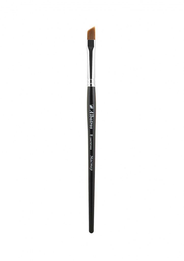 О серии: серия кистей «Мастер» представлена художественными кистями с различным ворсом. Все кисти выпускаются поштучно. Характеристика: данные кисти изготовлены из синтетических волокон. Кисти из такого материала являются более долговечными и износостойкими, чем кисти изготовленные из натурального ворса. Волос кистей имеет среднюю жесткость, эластичен и хорошо держит форму. При намокании волос кисти не теряет своих свойств. Пучок кистей плоской формы со скошенным кончиком. Номер кисти соответствует ширине пучка (в миллиметрах). Ворс надежно закреплен цельнотянутой обоймой. Кисти выполнены на удлиненных деревянных ручках, покрытых черной эмалью. Применение: данные кисти подходят для выполнения работ в различных техниках живописи. Производство: изготавливается компанией «Альбатрос», которая начала свою деятельность в 1989 году в городе Новосибирск. Компания хорошо зарекомендовала себя на рынке художественных товаром. Она постоянно работает над расширением своего ассортимента. Сегодня «Альбатрос» выпускает художественные кисти, холсты, ящики для красок и различные аксессуары для художников.