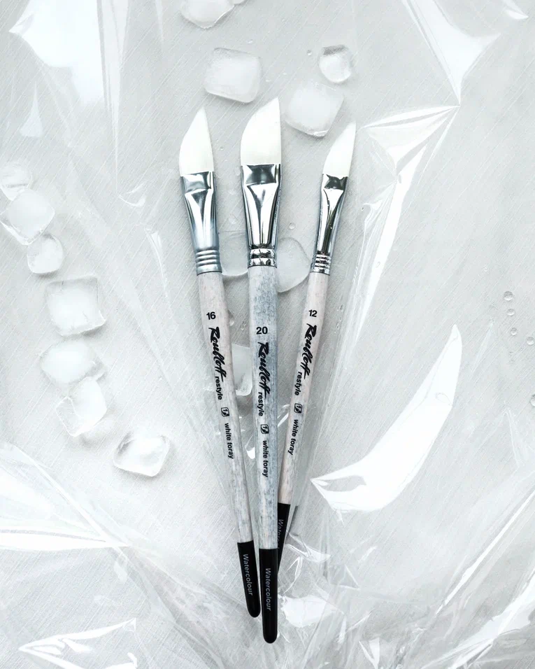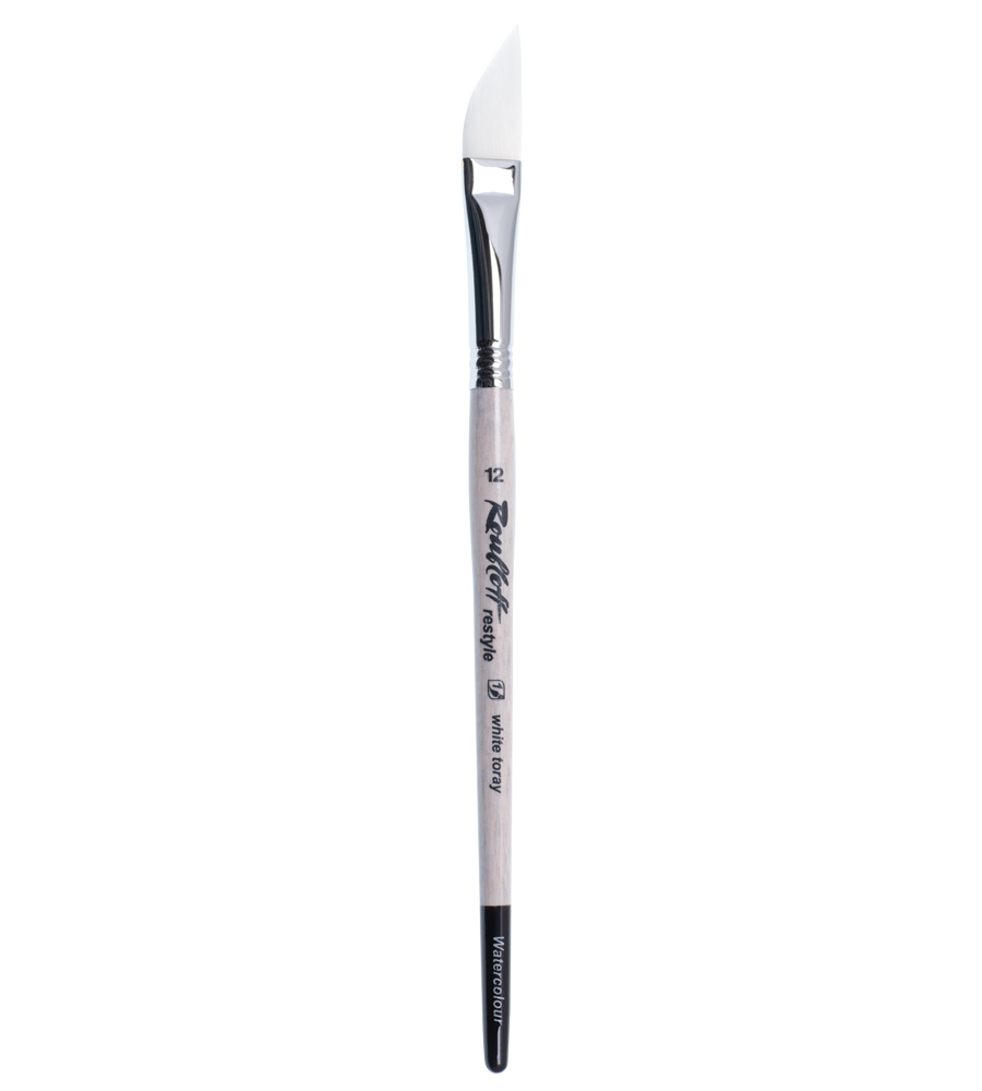 Кисть саблевидной формы из упругого и пружинистого волоса Toray. Жесткость синтетического ворса Roubloff Toray приближена к жесткости волоса натурального сибирского колонка. Ворс обладает достаточной влагоемкостью, удерживает много материала и сохраняет форму в процессе работы, подходит для работы акварелью, тушью и гуашью. Острое ребро кисти чутко отзывается на движение руки художника, что делает касания невероятно точными. Кисть-даггер – ценный инструмент в арсенале художника, наклонная форма и острый кончик позволяют легко менять толщину линии от очень тонкой к широкой, создавать выразительные динамичные мазки, рисовать длинные изящные линии, надписи, орнаментальные узоры и мелкие детали, подходит для точного нанесения краски в некрупных заливках. Короткая эргономичная ручка удобна для работы в студии и на пленэре. Ручка кисти защищена химстойким лаком, обеспечивающим долговечность. - упругая и отзывчивая - удерживает много воды и краски - хорошо сохраняет форму - мягкий ворс по свойствам близкий к колонку