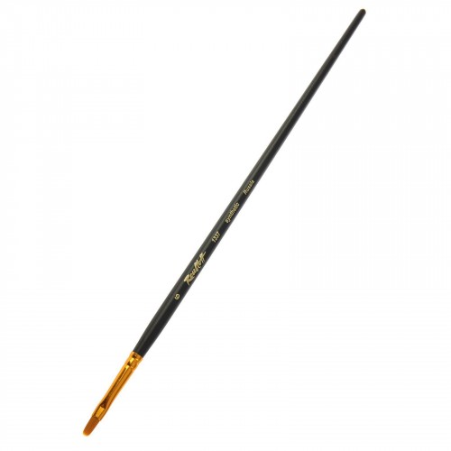 О серии: кисти серии «1337» изготавливаются из жесткой синтетики рыжего цвета. Кисти выпускаются размерным рядом от №4 до №14. Характеристика: для изготовления кистей этой серии использована жесткая синтетика рыжего цвета. Рабочая поверхность кистей серии «1337» изготовлена в форме плоского овала. Кисти такой формы сочетают в себе характеристики круглых и плоских кистей. Пучок кисти проклеен химически-стойким клеем и надежно прикреплен к древку кисти алюминиевой анодированной обоймой. Кисти выполнены на длинной ручке пропитанной лаком. Кисти этой серии будут удерживать волос при работе с ацетоном в течении двух часов. Применение: кисти этой серии в основном используются для работы с такими красками, как акрил, масло, гуашь. Кисти такой формы, в зависимости от положения относительно рабочей поверхности, могут использоваться как плоские или круглые. Удобны для прорисовки округлых форм. На усмотрение художника кисти можно использовать в других техниках живописи. Производство: изготавливаются под брендом Roubloff, который был основан в 1988 году в Кировской области (Россия). Кировская область – один из центров народных промыслов в России. Здесь же занимаются разведением пушных зверей, чей мех является идеальным материалом для кистей. Продукция бренда Roubloff – кисти самого разного назначения, размера и формы. Весь материл, используемый при производстве продукции, проходит отбор, чтобы каждый клиент получил лучшие кисти для своих работ. Кисти марки Roubloff являются одними из лучших в России.