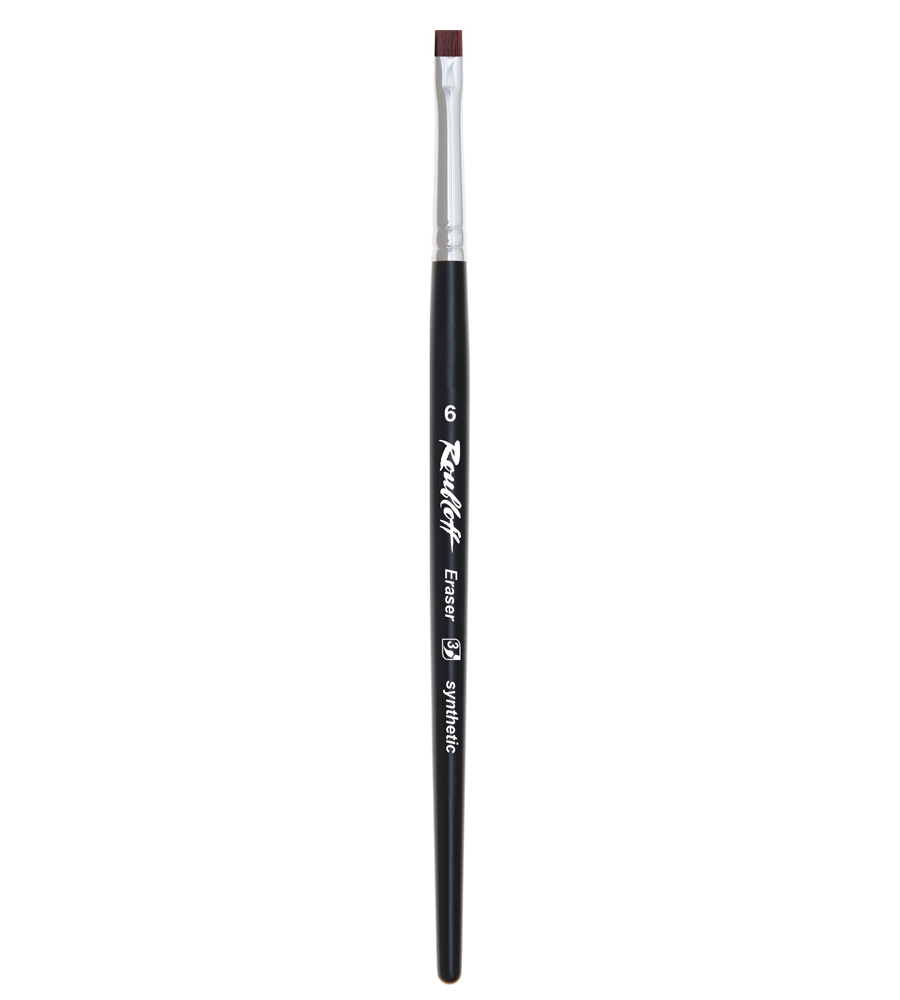 Кисть с коротким жёстким упругим синтетическим ворсом для аккуратного смывания (стирания) красочного слоя в акварельных работах. Тонкая и ровная кромка края волосяного пучка обеспечивает точность восстановления бликов, высветления и прорисовки тонких линий и мелких деталей. Короткая удобная ручка кисти защищена химстойким лаком.