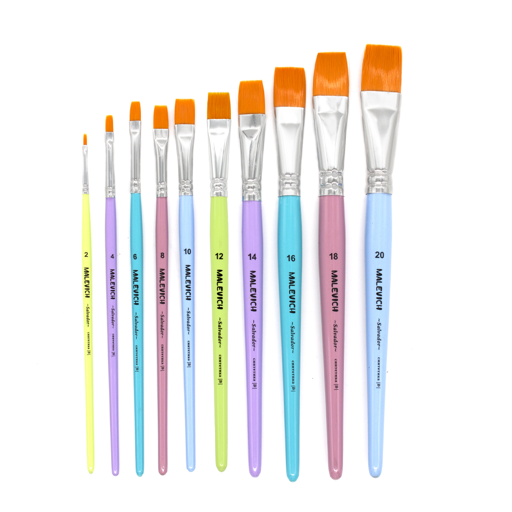 Кисти серии Salvador отличает яркий дизайн, пастельные цвета ручек привлекают молодых художников. Высококачественный ворс из японской рыжей синтетики отлично держит воду и подходит для любых видов красок. Ворс обладает оптимальным соотношением мягкости и упругости, отлично держит форму и обладает высокой износоустойчивостью.