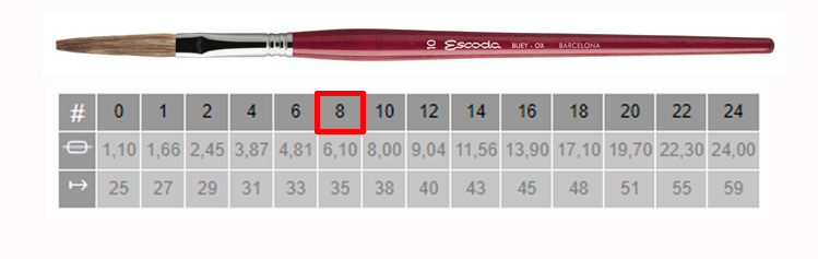 О серии: кисти серии "Filleting and Lettering 6318" производятся из ушного ворса быка. Кисти с таким ворсом обладают оптимальными качествами эластичности и упругости, хорошо держат и отдают краску на поверхность. Пучок кисти обладает плоской удлиненной формой. В серии представлены кисти с различным размером пучка. Минимальный диаметр рабочей части составляет 2,45 мм., максимальный диаметр 6,10 мм. Применение: кисти серии "Filleting and Lettering 6318" применяются для художественных, каллиграфических работ и леттеринга. Производство: кисти производятся компанией «Escoda». В 1933 году, в Испании неподалёку от Барселоны, Джозеп Эскода основал фабрику по изготовлению художественных кистей. С первых дней существования компания придерживается мнения, что только из лучших материалов можно создать кисти лучшего качества. Поэтому в производстве используются тщательно подобранные материалы, например, ворс таймырского колонка и русской белки, а также китайская щетина. Отличительной особенностью кистей является тройной обжим обоймы. Этот прием был впервые применён компанией «Escoda» и в дальнейшем запатентован. Тройной обжим позволяет избежать пустого пространства в обойме и создаёт устойчивое сцепление ворса и основания кистей.
