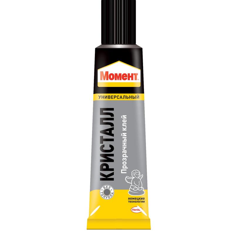 Клей Момент «Кристалл» 125 мл прозрачный не оставляет заметных следов. Лучше всего подходит для работы с чистыми поверхностями или с цветными материалами. Минимальное время испарения — поможет быстро решить все мелкие проблемы в ремонте. Отлично подходит для работ внутри помещения. Отлично клеит в разных сочетаниях, мягкий и жесткий поливинилхлорид, полистирол, оргстекло, фарфор, керамика, стекло, дерево, металл, резина, кожа, пробка, ткань, поролон, бумага, картон.