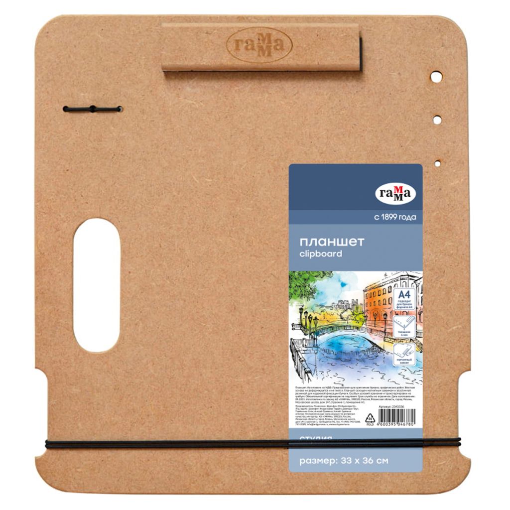 Планшет-клипборд для живописи на пленэрах и вне студии — легкий, тонкий, но прочный. Магнитный зажим и резинка надежно фиксируют лист, не оставляя заломов. Гладкая поверхность не повредит даже тонкую бумагу. Держатели для карандашей и отверстия для кистей позволяют организовать рабочее место. Планшет можно установить на мольберт-треногу или этюдник. Вырубная ручка для удобной транспортировки.
