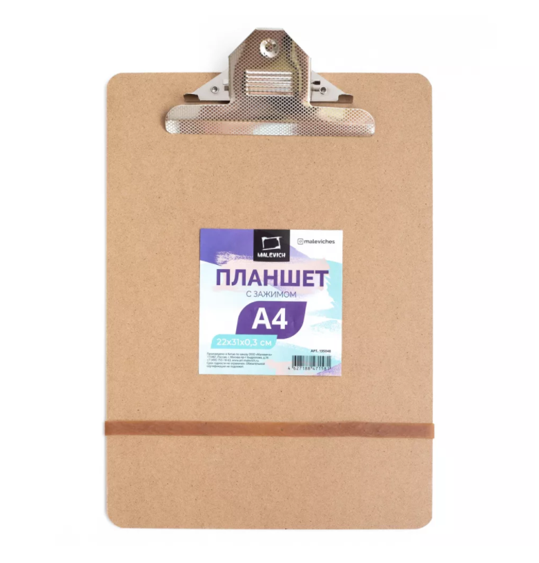 Планшет с зажимом (клипборд) - незаменимое приспособление для эскизов на бумаге и картоне. Особенно понравится он студентам творческих специальностей и художникам, любящим делать наброски на пленэре. Подходит для любых графических материалов, имеет встроенный зажим для бумаги. Изготовленный из экологически чистого материала, ДВП, легкий и практичный планшет Малевичъ - настоящая находка для любителей эскизов и выездов на пленэр. Планшет оснащен большим зажимом, надежно удерживающим ее даже при сильном ветре. Гладкая поверхность подходит для работы с самой тонкой бумагой и гарантирует легкое скольжение карандашей, перьев или мелков.