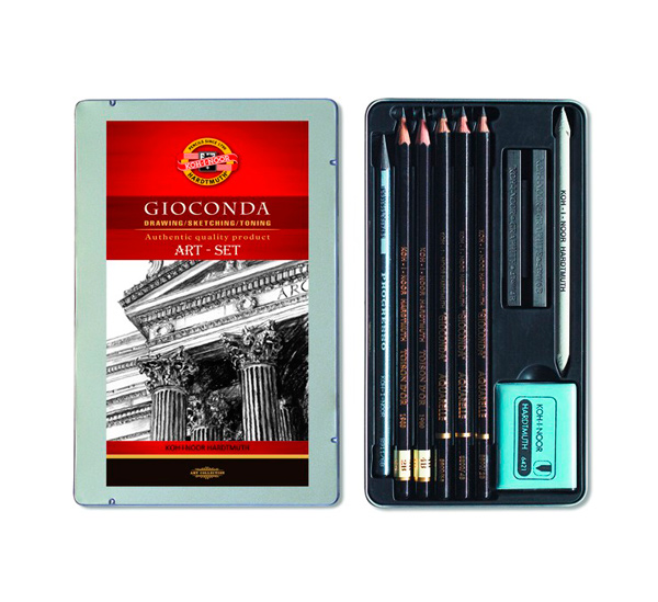 Набор от известного производителя, компании Koh-I-Noor станет отличным решением в качестве подарка для человека увлекающегося изобразительным искусствам в стиле графика. Состав набора: — 1 графитный карандаш Progresso; — 2 графитных карандаша (2В, 4В); — 3 акварельных карандаша (2В, 4В, 6В); — 2 графитных мелка; — 1 бумажная растирка; — 1 ластик для художественных работ.