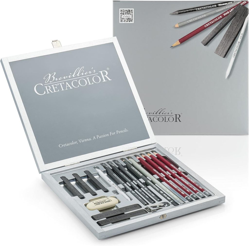 Набор художественный Cretacolor "SILVER BOX" в деревянной коробке окрашенной в серебряный цвет
