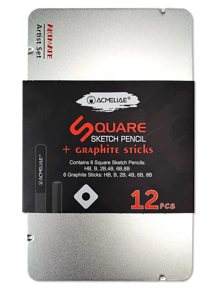 Набор для рисования и графики. Содержит 6 чернографитных карандашей и 6 штук прессованного графита разной твердости: HB, B, 2B, 4B, 6B, 8B. Диаметр грифеля карандашей для черчения от 2,2 до 3,5мм в зависимости от твердости карандаша. Профессиональный проклейка грифеля L.B.S.(корпус с грифелем составляет одно целое) предотвращает его поломки при падении и затачивании. Однородный грифель простого карандаша не царапает бумагу, оставляет четкие яркие линии, не крошится, затачивается до нужной остроты. Квадратный корпус легкий, удобно лежит в руке, пальцы не скользят – можно работать без усталости. Корпус из высококачественной древесины ровно и аккуратно затачивается стандартными точилками. Длина корпуса 178мм. Матовая бархатистая лакированная поверхность, запаянный верх. Заточенные. Прессованный графит в виде брусков позволяет проводить как тонкие линии, так и широкие полосы разной плотности – от светло-серого до черного цвета. Можно рисовать как углом, так и всей поверхностью бруска. Не пачкают руки.