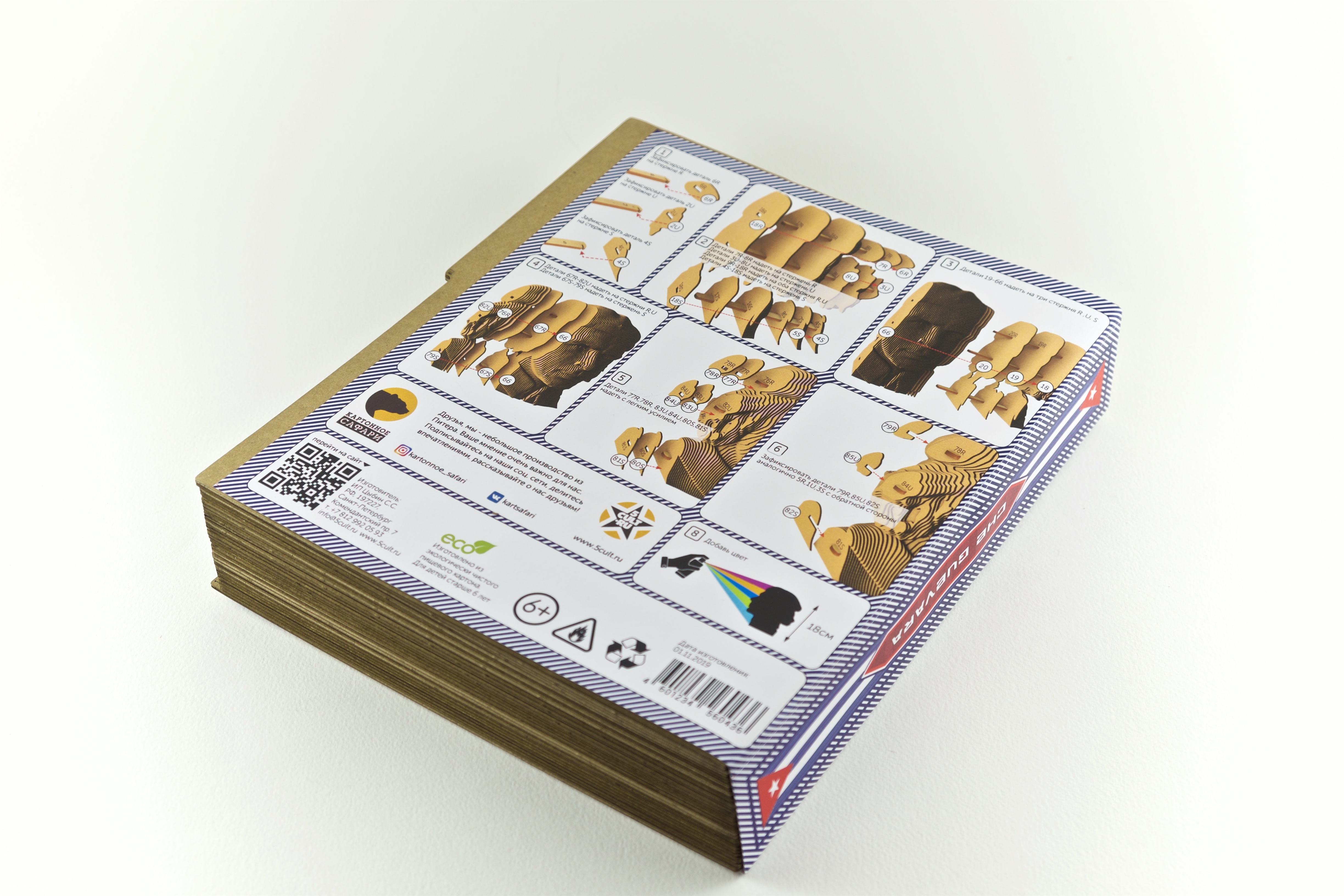 Оригинальные 3D-конструкторы изготовлены из пищевого гофрокартона — нетоксичного, экологически чистого материала, пригодного для повторного использования. Каждая деталь конструктора вырезана и пронуиерована при помощи высокоточной лазерной резки. Конструктор легко собрать, следуя прилагаемой в комплекте инструкции. Сборка таких конструкторов развивает пространственное мышление, усидчивость и аккуратность. Собранная модель может стать частью интерьера или оригинальным подарком для ваших друзей и близких. Готовую модель по желанию можно раскрасить акрилом, карандашами, маркерами и другими материалами. Высота 18 см.