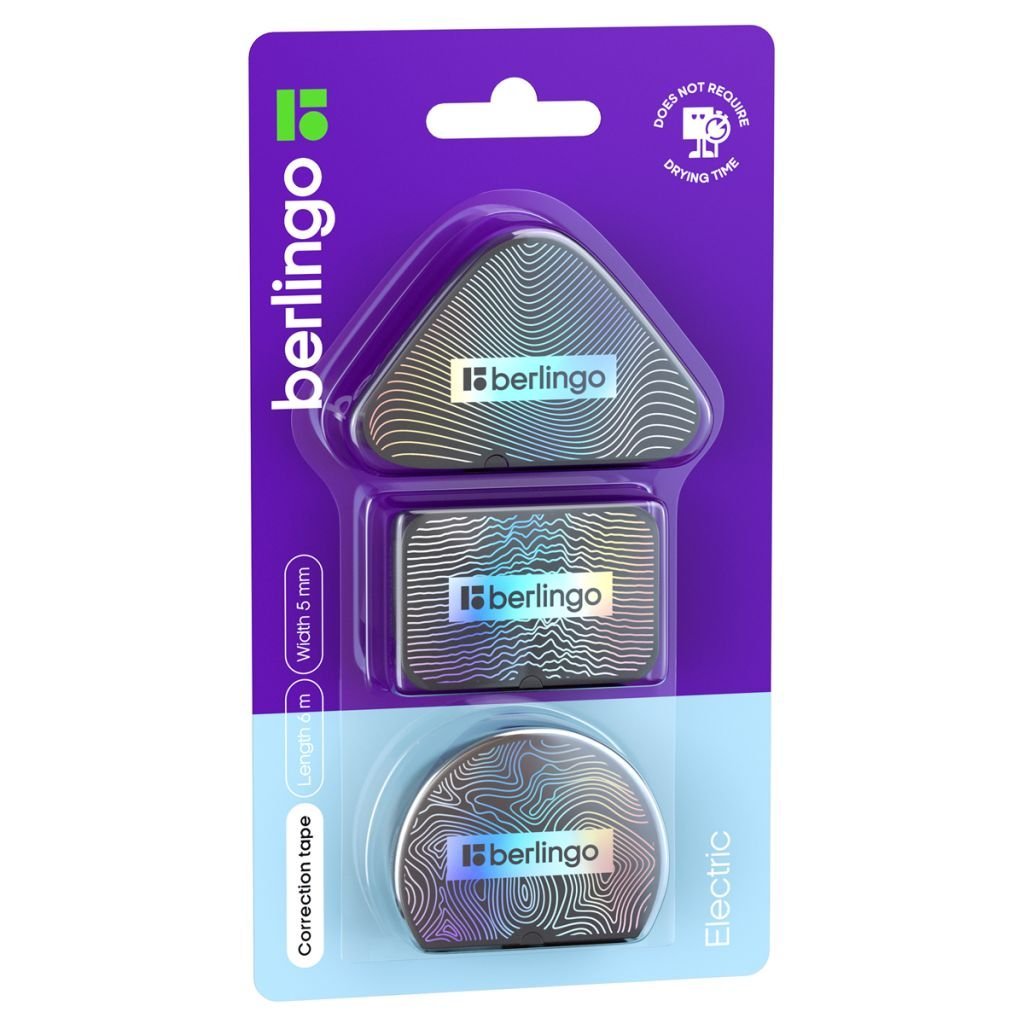 Корректирующая лента Berlingo "Electric" 5 мм*6 м, 3шт в блистере, европодвес