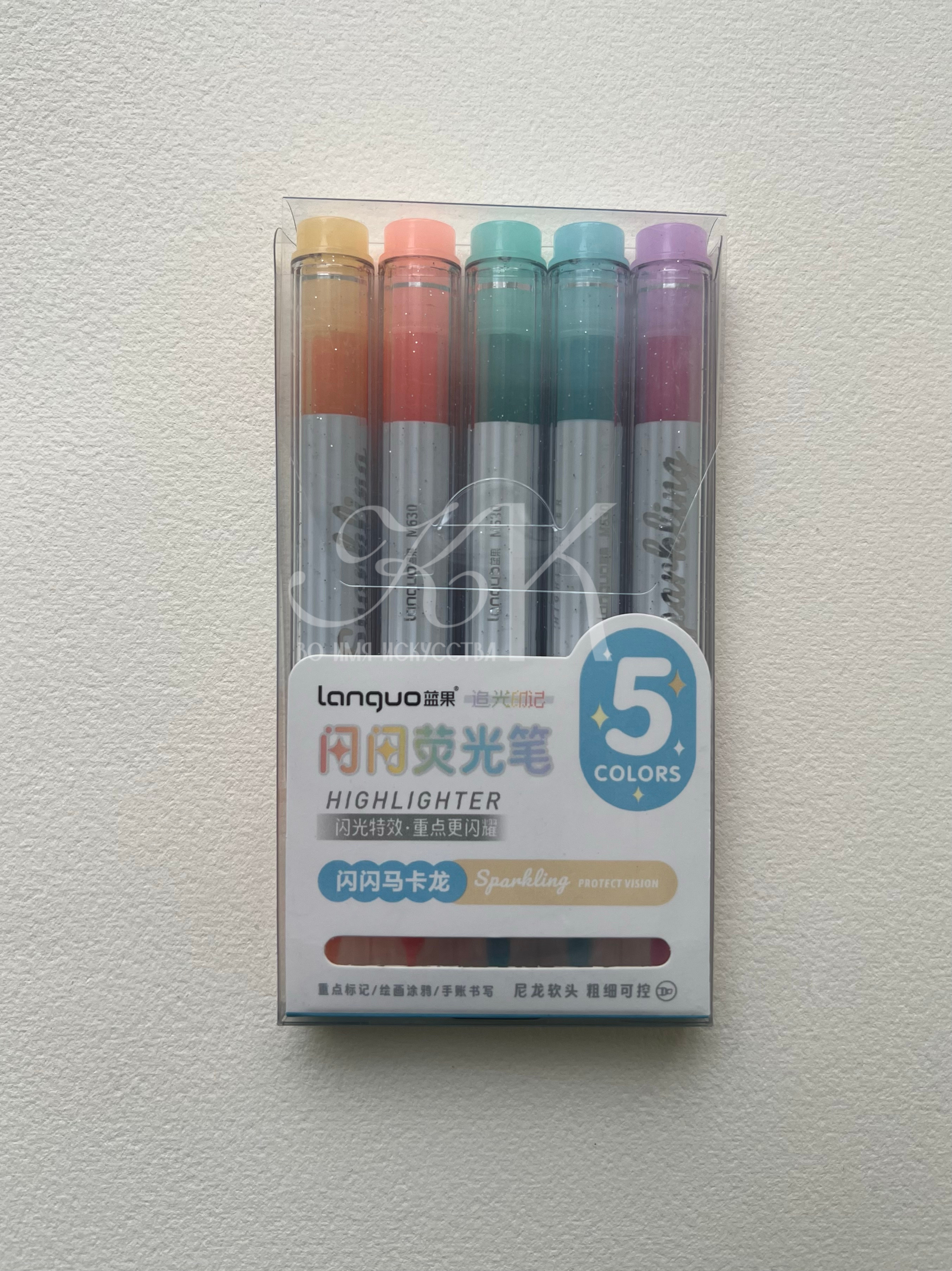 Набор текстовыделителей Languo 5 цветов. Маркеры для выделения текста с гибким скошенным наконечником 1-4 мм, который обеспечивает четкую непрерывную линию при выделении текста.