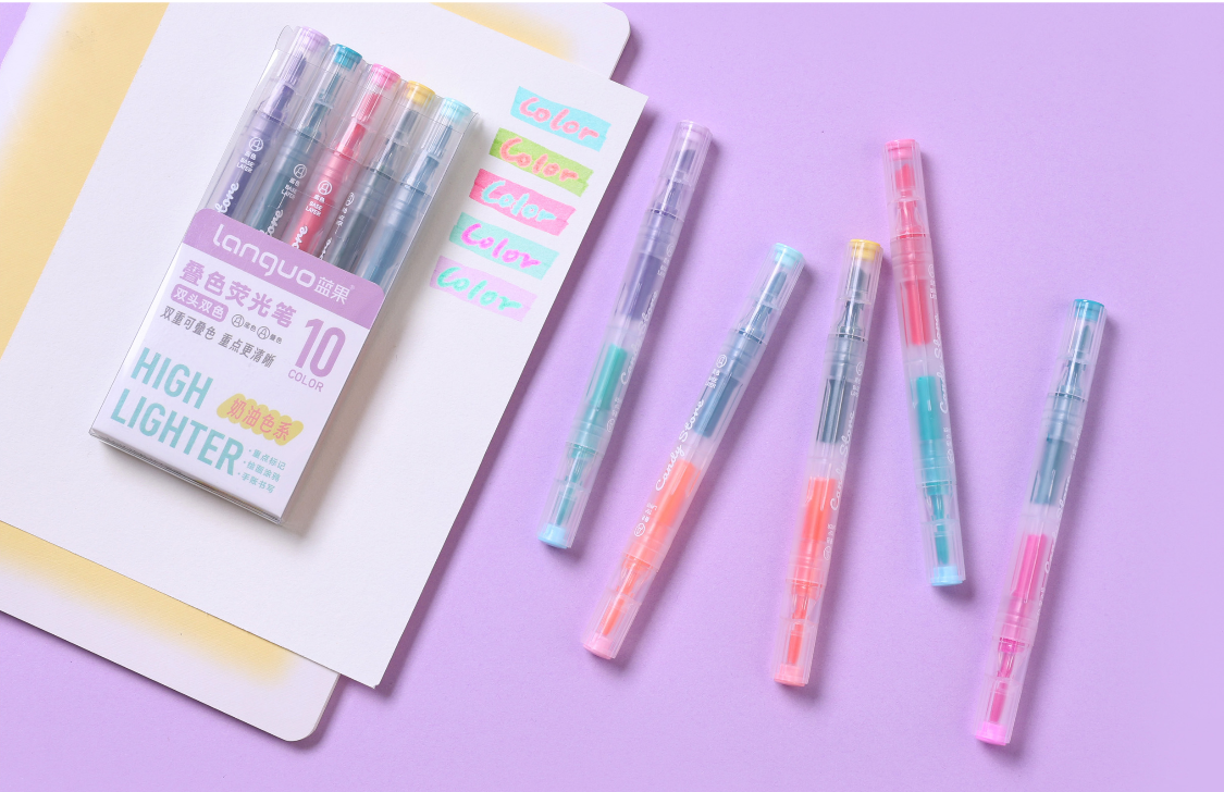 Набор текстовыделителей Languo 10 цветов. Маркеры для выделения текста с гибким скошенным наконечником 1-4 мм, который обеспечивает четкую непрерывную линию при выделении текста.