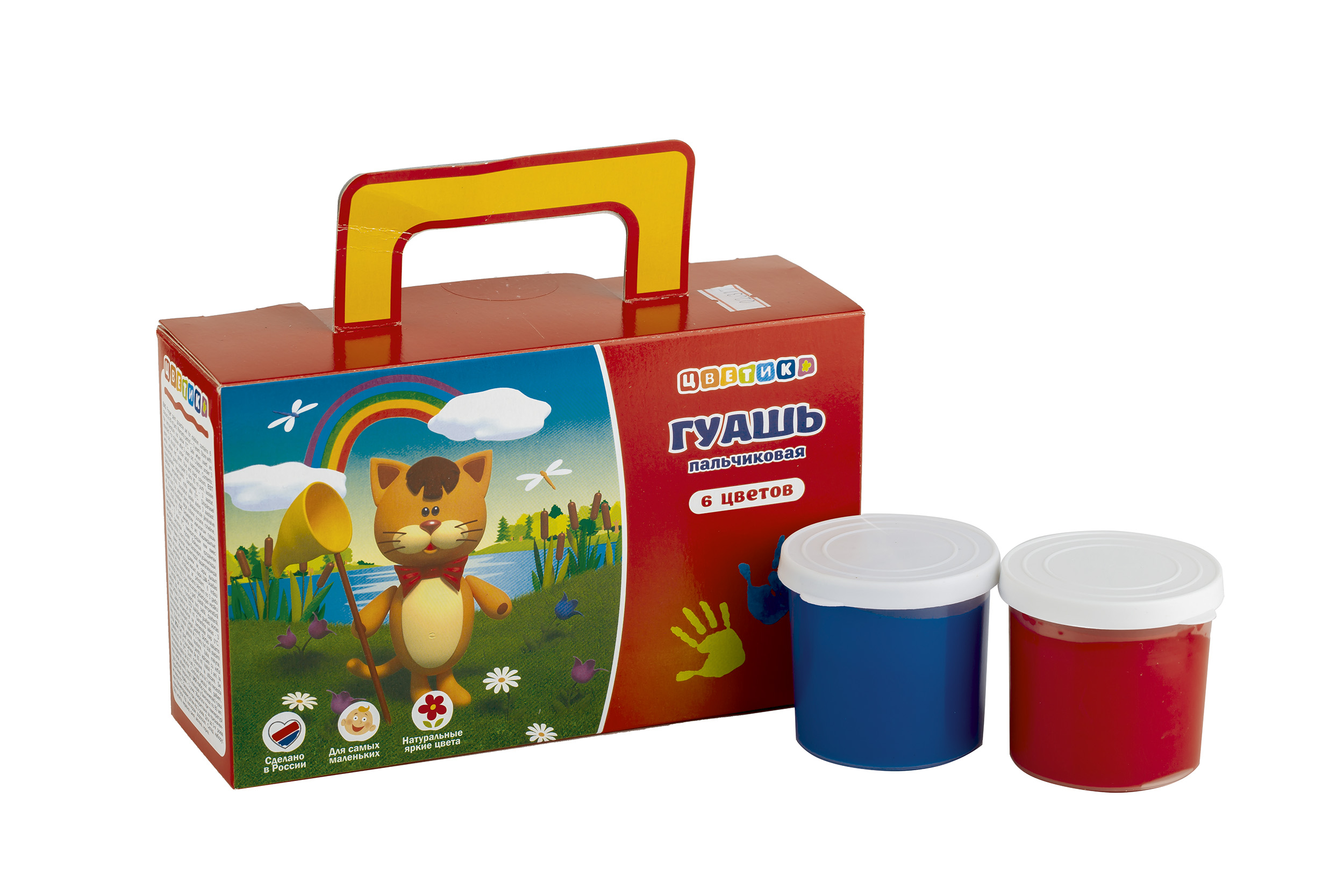 Гуашевые краски серии " Цветик" созданы специально для детского творчества и декоративно - оформительских работ. Они легко наносятся на бумагу и картон . При высыхании приобретают матовую , бархатистую поверхность, легко размываются водой. Такой гуашью можно рисовать без использования кисти, и без вреда для детских пальчиков.