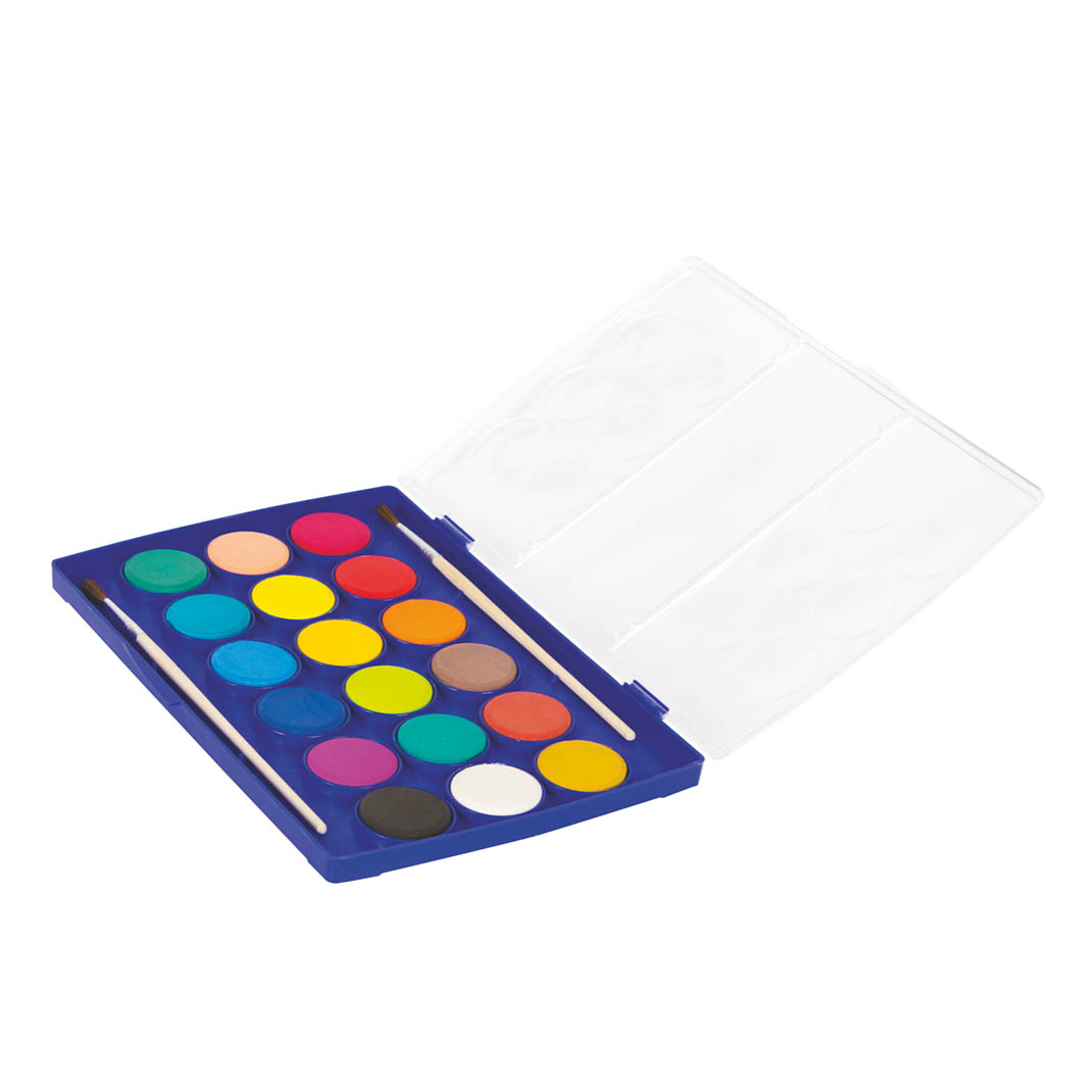 Набор акварельных красок Colorino состоит из 18 цветов в кюветах увеличенного объема 28 мм. Краски выполнены из натуральных компонентов, не токсичны и безопасны для детского творчества. Краски обладают яркими насыщенными цветами, легко смешиваются между собой и быстро сохнут сохраняя интенсивность цвета. Акварель легко смывается с рук и отстирывается с большинства видов ткани. В наборе есть кисточка из натурального ворса. Поставляются в удобном пластиковом пенале.
