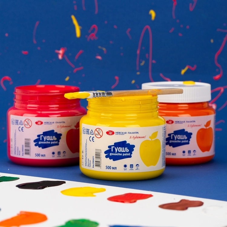 Гуашевые краски "Я-Художник!" от ЗХК «Невская палитра» созданы специально для детского творчества и декоративно-оформительских работ. Большая банка идеальна для использования в школах. Отличительная особенность гуаши яркие и насыщенные цвета. Легко отмывается с поверхности. Сохраняют цвет после высыхания, приобретают бархатистую текстуру. При нанесении толстым слоем не растрескиваются. При разведении водой приобретают свойства акварели – ложится полупрозрачным равномерным слоем.