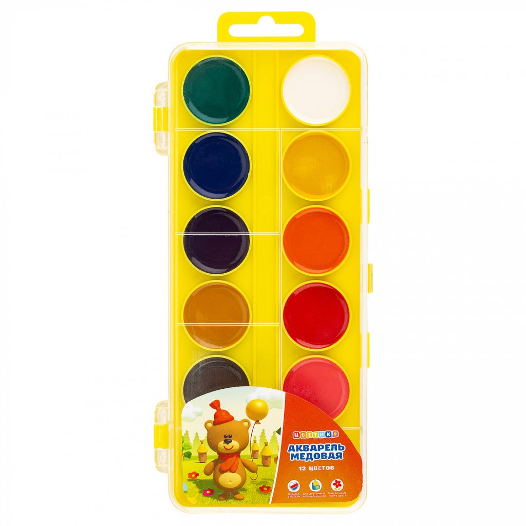 О серии: изготавливается из тщательно подобранных материалов. Серия товаров «Цветик» разработана специально для детского творчества и декоративно-оформительских работ. Краски соответствуют европейским нормам безопасности. Выпускаются в наборах с разным количеством цветов. Характеристики: обладают хорошей кроющей способностью. При высыхании образуют матово-бархатистую поверхность. Размываются водой Применение: для детского творчества и оформительских работ. Производство: производится заводом художественных красок Невская палитра, расположенным в городе Санкт-Петербурге. Завод уже более 80 лет выпускает продукцию для профессиональных художников и любителей творчества.