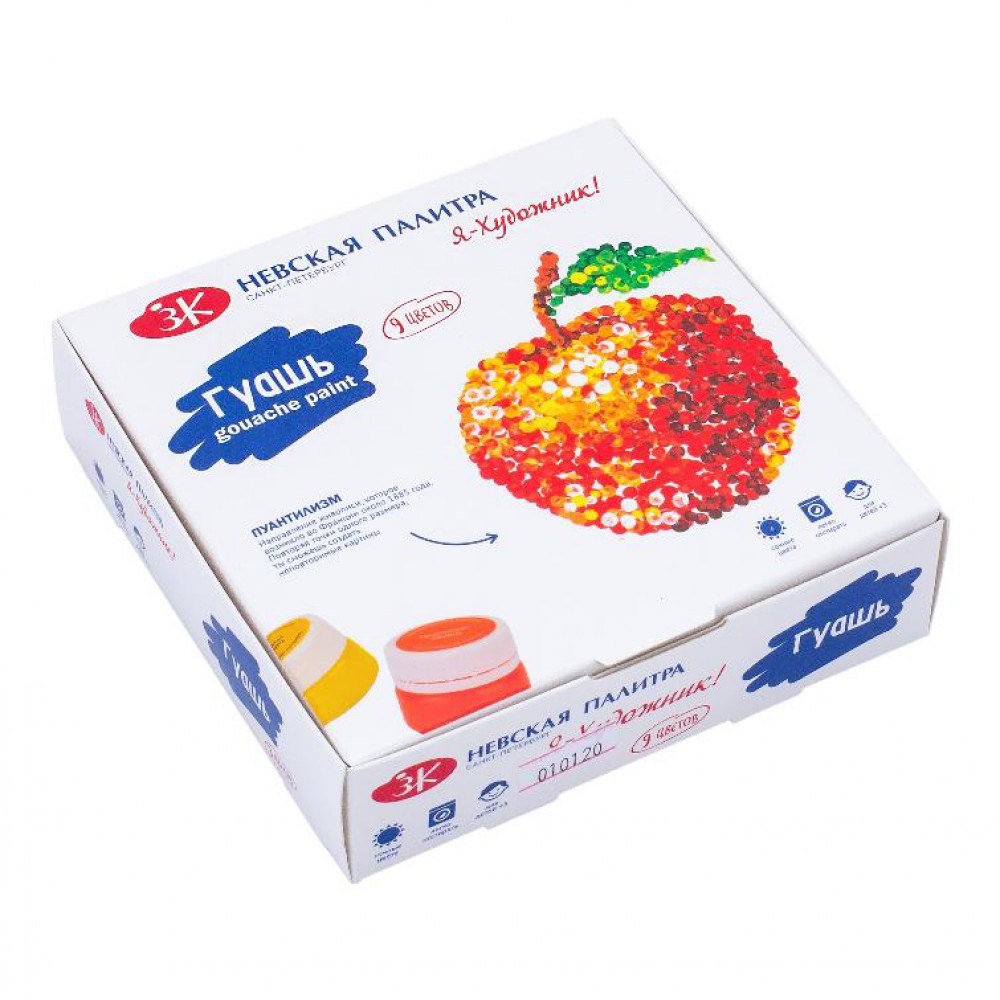 Отличительная особенность гуаши яркие и насыщенные цвета. Легко отмывается с поверхности. Сохраняют цвет после высыхания, приобретают бархатистую текстуру. При нанесении толстым слоем не растрескиваются. При разведении водой приобретают свойства акварели – ложится полупрозрачным равномерным слоем.