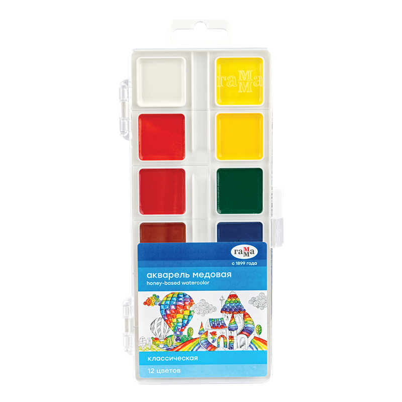 Медовая полусухая акварель серии "Классическая" разработана для использования в школе и дома. Естественные цвета акварели обучают правильному цветовосприятию окружающего мира. Краски изготовлены на основе органических пигментов и натурального связующего. Прозрачность красок, яркость и чистота цвета, разносимость и размываемость - основные характеристики акварели данной серии. Кюветы с высокими бортиками и увеличенным расстоянием между красками предназначены для удобства в работе детей. Палитра для смешивания красок расположена на крышке. Акварель легко смывается с рук и отстирывается с одежды. Объем кювет - 3,14 см3. Форма кювет - квадратная.