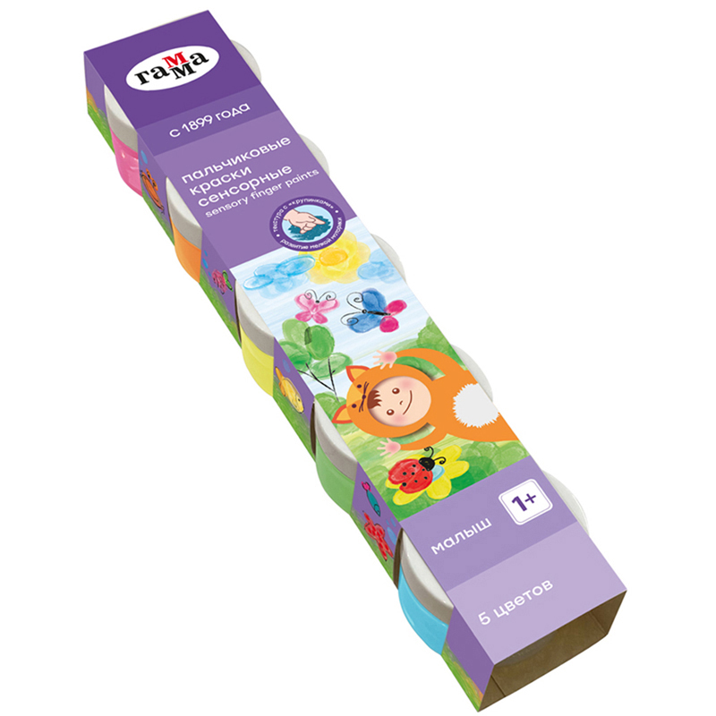 Сенсорные пальчиковые краски «Малыш» содержат специальные «крупинки» в составе, что в увлекательной форме способствует развитию осязания малыша и мелкой моторики рук. Пальчиковые краски ГАММА серии «Малыш» разработаны специально для детей от года. В составе натуральные компоненты и косметические пигменты. Краски имеют приятную плотную текстуру, укрывистые. Легко смываются с рук водой и отстирываются с одежды. Содержат пищевую горечь в составе, чтобы у ребёнка не возникло желание попробовать краски на вкус. Удобные герметичные баночки объёмом 50 мл с широким горлышком, разработанные специально для детских пальчиков, обеспечат комфорт в творчестве малыша.