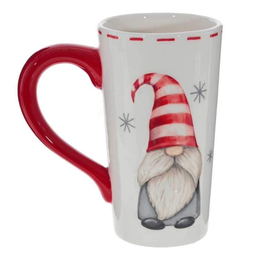 Яркая подарочная кружка с рельефным изображением гнома со снежинками выполнена из фарфора. Объём кружки 650 мл.