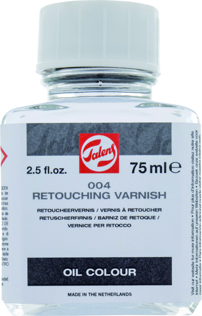 Ретушный лак применяется в качестве промежуточного слоя для усиления сцепления слоев между собой или растворения верхнего высохшего слоя краски перед возобновлением работы. Также может применяться как временный защитный лак. Не влияет на время высыхания красочного слоя. В качестве временного защитного лака использовать не ранее чем через 2-3 месяца. Сохнет в течение нескольких часов. Не желтеет. Излишки лака удаляются уайт-спиритом. Состав: синтетическая смола, уайт-спирит.