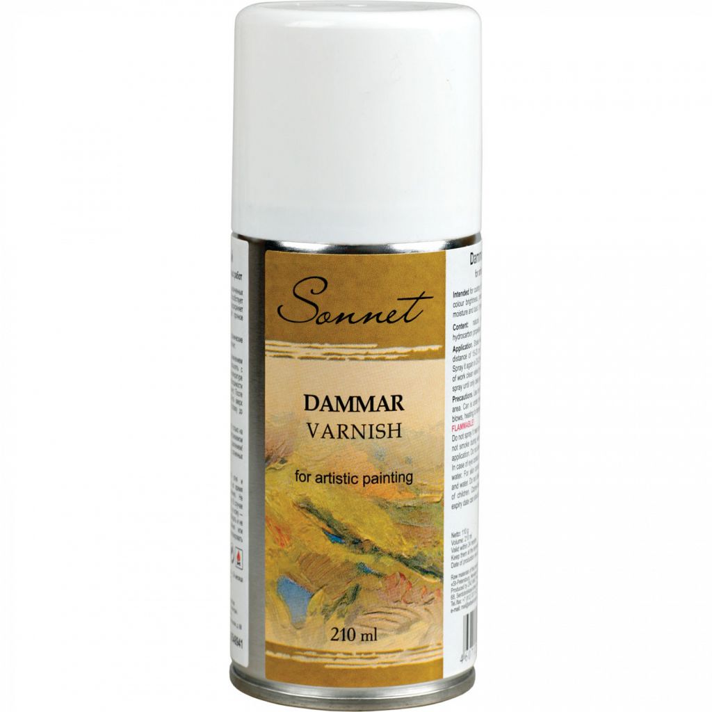 Лак даммарный "Сонет". Применяется для разведения масляных красок и покрытия законченных произведений живописи. Также его используют для закрепления промежуточных слоев, как протирку промежуточных слоев для послойной живописи. Объем: 210 мл. В аэрозоли.