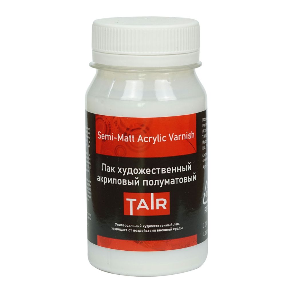 Лак акриловый полуматовый Таир. Применяется для грунтования, укрепления, уменьшения или выравнивания впитывающей способности различных подложек. Также придает им водостойкости, жёсткости. Подходит для перелакировки цветных покрытий, перекрывания матовых красок с целью получения гладкой, блестящей, износостойкой, моющейся и невосприимчивой к загрязнениям поверхности. Объем: 100 мл.