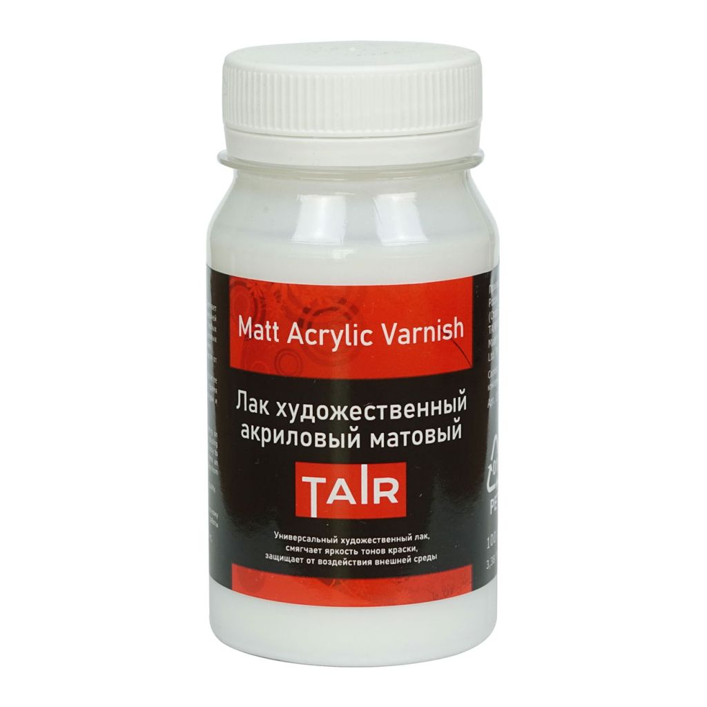 Лак акриловый матовый Таир. Применяется для грунтования, укрепления, уменьшения или выравнивания впитывающей способности различных подложек. Также придает им водостойкости, жёсткости. Подходит для перелакировки цветных покрытий, перекрывания матовых красок с целью получения гладкой, блестящей, износостойкой, моющейся и невосприимчивой к загрязнениям поверхности. Объем: 100 мл.