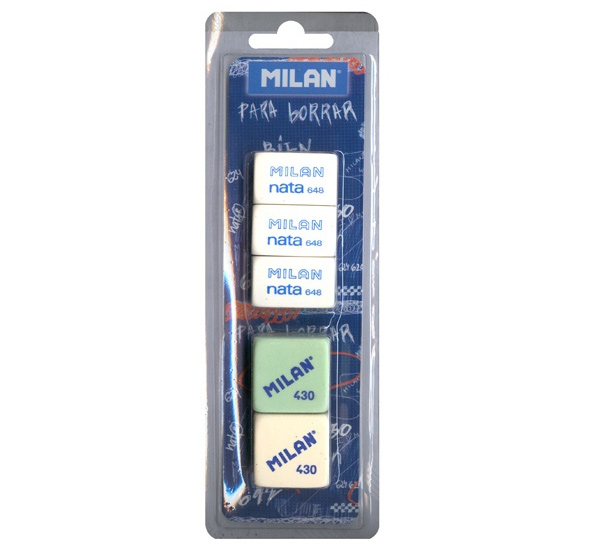Набор ластиков MILAN: 2 ластика Milan 430 28*28*13 мм, 3 ластика Milan 445 31*23...