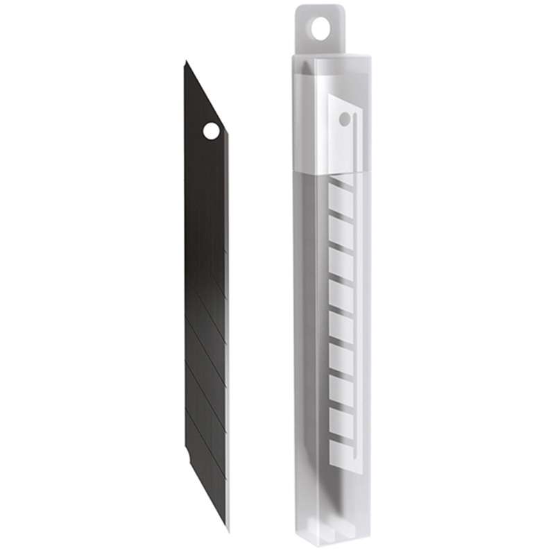 Сменные лезвия черного цвета с углом 30° для канцелярского ножа в пластиковом пенале по 5 шт. Изготовлены из стали.