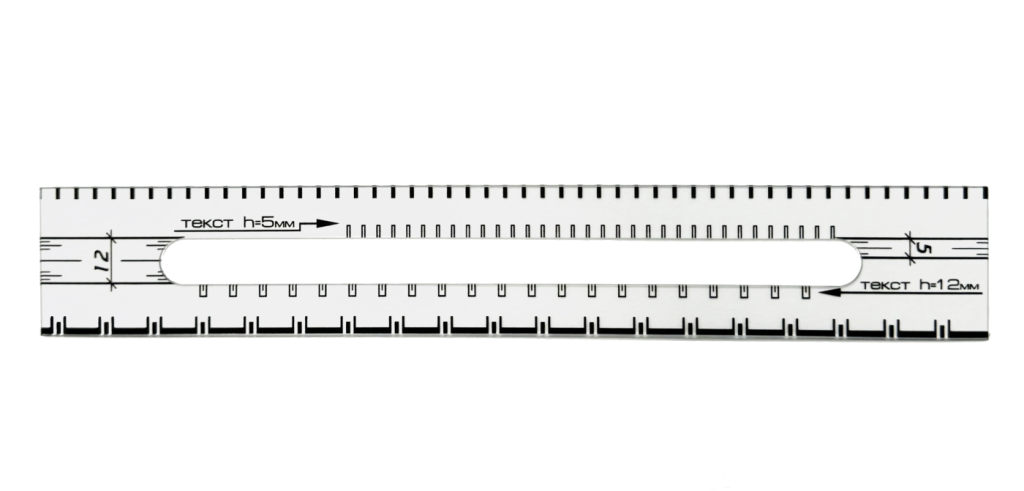 Материал: прозрачный монолитный поликарбонат. Особенности: Уникальный функции Данная линейка позволяет быстро и аккуратного чертить узкий архитектурный шрифт 12 мм. (для заголовков), 5 мм. (для подписей). Линейка позволяет чертить штриховые (невидимые) и штрихпунктирные (осевые) линии. Штриховые линии (невидимые) имеют размеры : Штрих 4 мм , между штрихами 1 мм. Штрих пунктирные линии(осевые) имеют размеры : Штрих 10 мм , между штрихами 1 мм. Надёжность Линейка изготовлена из твёрдого и абсолютно не ломающегося прозрачного материала. Разметка нанесена с помощью ультрафиолетовой печати, которая является самым прочным видом печати. Удобство в использовании Линейка имеет фаски с нижней стороны вдоль двух граней, что позволяет чертить изографом или рапидографом, не переворачивая инструмент и не боясь что тушь затечёт под линейку. Как пользоваться разметкой на этой линейке можно посмотреть по Q-ar коду в понятной и подробной видеоинструкции, которая входит в комплектацию.
