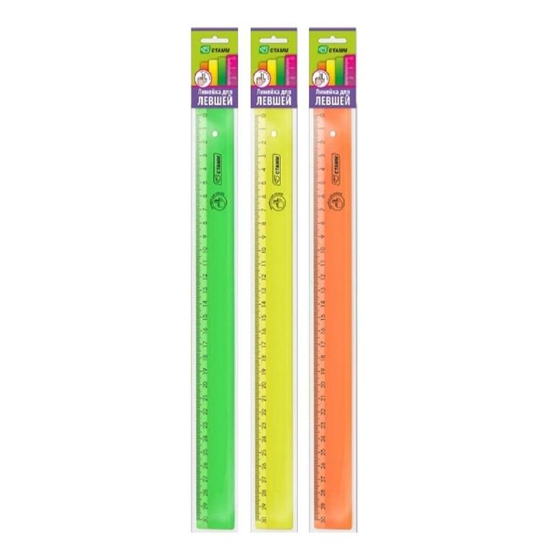 Линейка для левшей Neon с европодвесом. 4 цвета. Товар специально разработан для людей с ведущей левой рукой. Шкала размечена справа налево. Длина шкалы — 30 см. Для этого товара отсутствует возможность выбора цвета корпуса, он будет случайным.