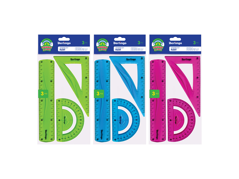 Набор чертежный гибкий, ударопрочный, идеально подойдет для школьных занятий. В наборе линейка 20 см, треугольник 30°, 14 см, транспортир 10 см, 180°. Для этого товара отсутствует возможность выбора цвета корпуса, он будет случайным.