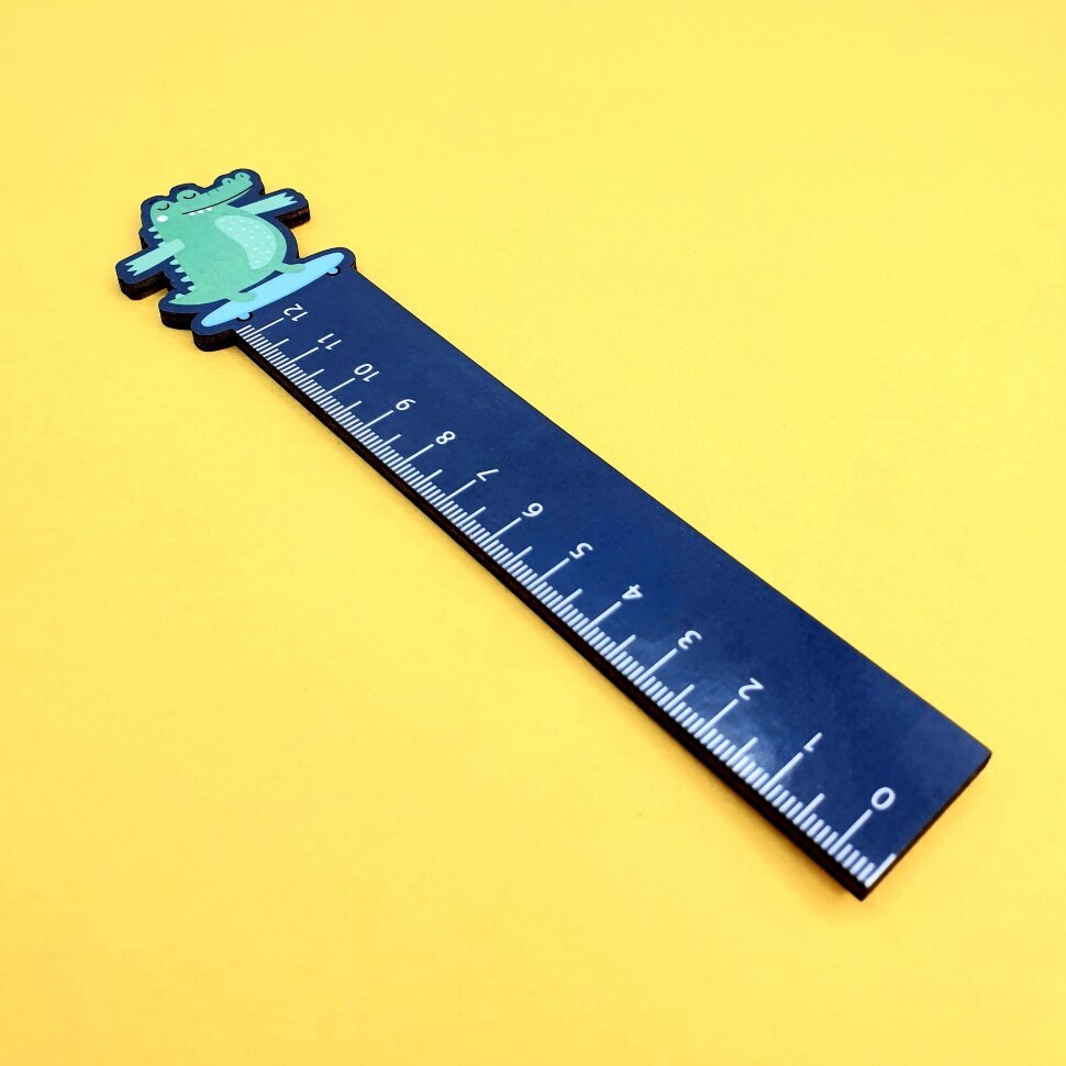 Стильная яркая линейка выполнена из дерева. Разметка на 12 см.