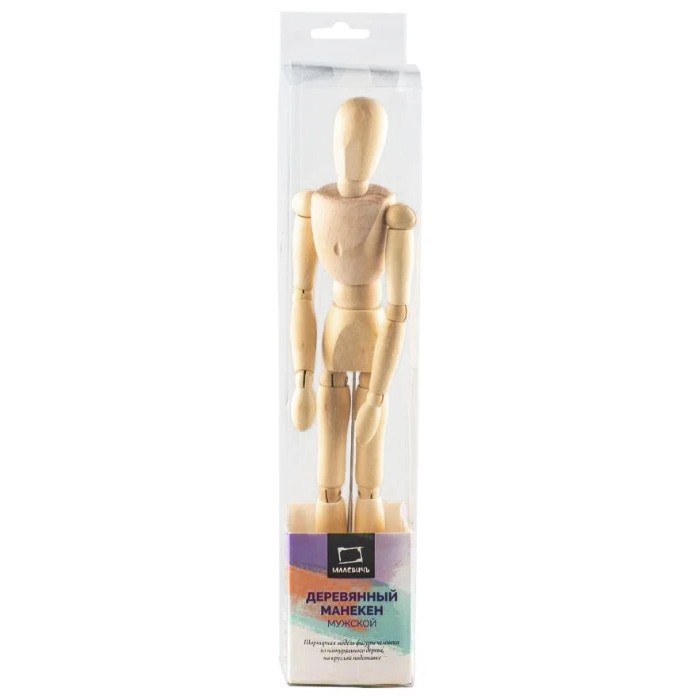 Деревянный мужской манекен используется как наглядное пособие для академического рисунка, а также для декорирования помещений, создания творческой атмосферы. Высота - 30см.