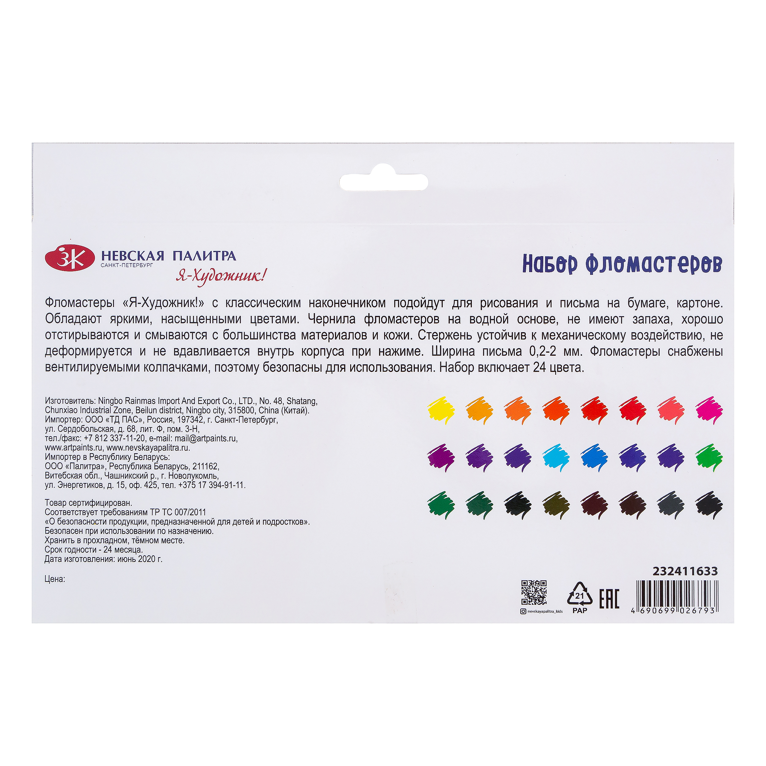 Фломастеры "Я-Художник!" предназначены для рисования на бумаге и картоне. Фломастеры на водной основе, благодаря чему легко смываются с большинства материалов и кожи. Вентилируемый колпачок обеспечивает безопасность при использовании (не перекрывает доступ кислорода в случае попадания колпачка в дыхательные пути). Стержень фломастеров крепко закреплен и даже при сильном нажиме не провалится внутрь корпуса. Толщина линии письма от 0,2 до 2 мм.