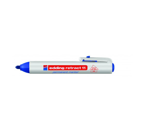 Маркеры перманентные EDDING «11» (Эддинг «11») изготавливаются одним из самых известных производителей маркеров в мире - компанией «EDDING». Она была основана в 1960 году в Гамбурге (Германия). Изначально компания производила предметы для планирования и визуализации бизнес-процессов, но в дальнейшем сменила направленность своей работы и начала профессионально выпускать маркеры и сопутствующие товары. Сегодня в лабораториях компании усилиями выдающихся химиков, технологов, инженеров создаются революционные продукты. Блестящие идеи, такие как «ультрафиолетовый маркер», «силиконовый маркер», «аэрокосмический маркер» и многие другие принадлежат именно компании «Edding». Особое внимание уделяется контролю качества продукции. Производство сертифицировано в соответствии с требованиями международных стандартов системы управления качеством DIN EN ISO 9001. Маркеры перманентные EDDING «11» предназначены для нанесения надписей на различные гладкие поверхности. Они отличаются от других маркеров отсутствием колпачка и наличием кнопки. Специальный механизм позволяет маркерам не высыхать долгое время. При нажатии на кнопку из корпуса выдвигается наконечник маркера, при повторном нажатии наконечник убирается в корпус. Маркеры хорошо ложатся на такие поверхности, как металл, дерево, стекло, пластик, керамика, плёнка, кафель. Чернила маркеров EDDING «11» изготавливаются на спиртовой основе. Надписи, нанесённые этими маркерами, не выцветают и не смываются водой со временем. Маркеры перманентные EDDING «11» оснащены круглым наконечником толщиной 1,5-3 мм (в зависимости от наклона). Выпускаются поштучно в четырёх различных цветах: чёрном, красном, синем и зелёном.