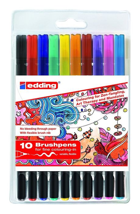 Имея под рукой ручку-кисть Edding "1340" с гибким наконечником в виде кисточки, вы будете с удовольствием не только рисовать, но даже подписывать пригласительные открытки. Ручкой-кисточкой Edding "1340" вы с легкостью сможете делать как широкие мазки, так и тонкие линии, она поможет вам изобразить смешные фигурки на приглашениях или цветочный орнамент на бумажных салфетках. Палитра ручек-кисточек Edding "1340 Brushpen" состоит из 10 ярких оттенков. Ручка заправлена не имеющими запаха чернилами на водной основе, до высыхания чернила разбавляются водой.
