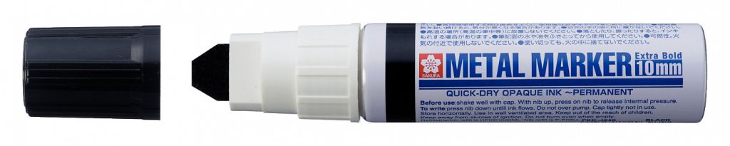 Маркер Metal с жидкими спиртовыми чернилами на пигментах, со специальной клапанной системой подачи краски. Этот маркер отвечает требованиям PSPC (стандарт качества защитных покрытий балластных танков на судах всех типов), таким образом, надписи, сделанные этим маркером, прекрасно подходят для закрашивания, не оставляя никаких следов. Подходит для большинства видов металлов, включая оцинкованную сталь. Быстросохнущая, укрывистая, краска без ксилола со слабым запахом Чернила можно перезаправлять, наконечники заменить. Высокопрочный, легкий алюминиевый корпус для тяжелого промышленного использования.