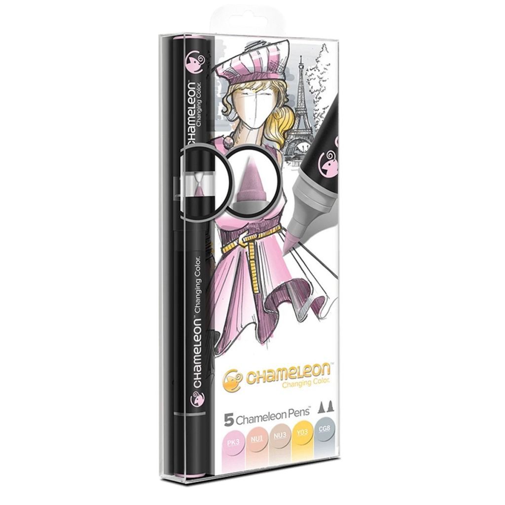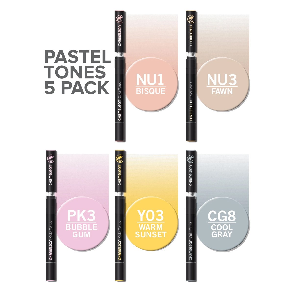 Маркеры Chameleon с инновационной системой смешивания цветов, которая позволяет создавать плавные переходы и градиенты с использованием всего одного маркера. Весь секрет заключается в смешивающей камере, которая содержит тонирующий растворитель, осветляющий первоначальный цвет пера, создавая эффект размытия акварельных красок. При поступлении в наконечник сначала чернила имеют светлый тон, а затем постепенно темнеют до исходного тона. Для возврата к светлому тону, достаточно подержать маркер в вертикальном положении. Ещё одним преимуществом маркеров Chameleon является возможно повторной заправки и замены перьев. Каждый маркер оснащён двумя перьями - перо-кисть и пулевидный наконечник, которые так же легко заменяются на новые. В данном наборе представлено 5 маркеров пастельных цветов. Особенности: — Двусторонний маркер — Два японских пера: эластичное перо-кисть, пулевидное перо — Профессиональные качественные спиртовые чернила — Перезаправляемые чернила — Сменные перья — Чернила устойчивы на большинстве поверхностей — Совместимость со всеми другими чернилами на основе спирта — Нетоксичные и практически без запаха — Идеально подходят для всех типов скетчей, манги, графики.