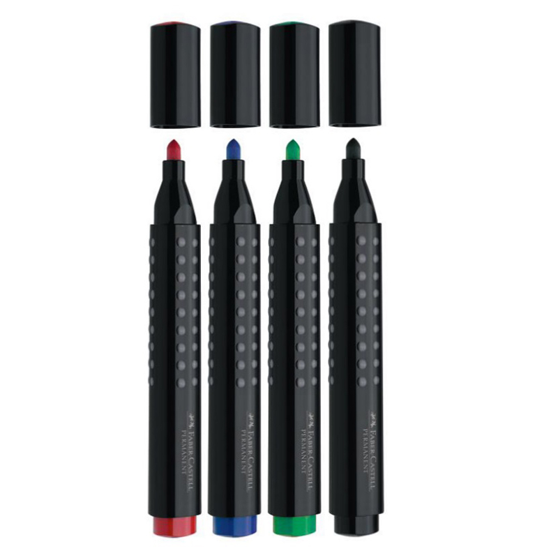 Перманентные маркеры Faber-Castell "GRIP 1504" с круглым наконечником. Маркеры отлично пишут на любой поверхности, перманентные чернила не стираются и устойчивы к воздействию воды и выцветанию. Запатентованная грип-система с массажными шашечка обеспечивает удобный захват и комфортную работу.