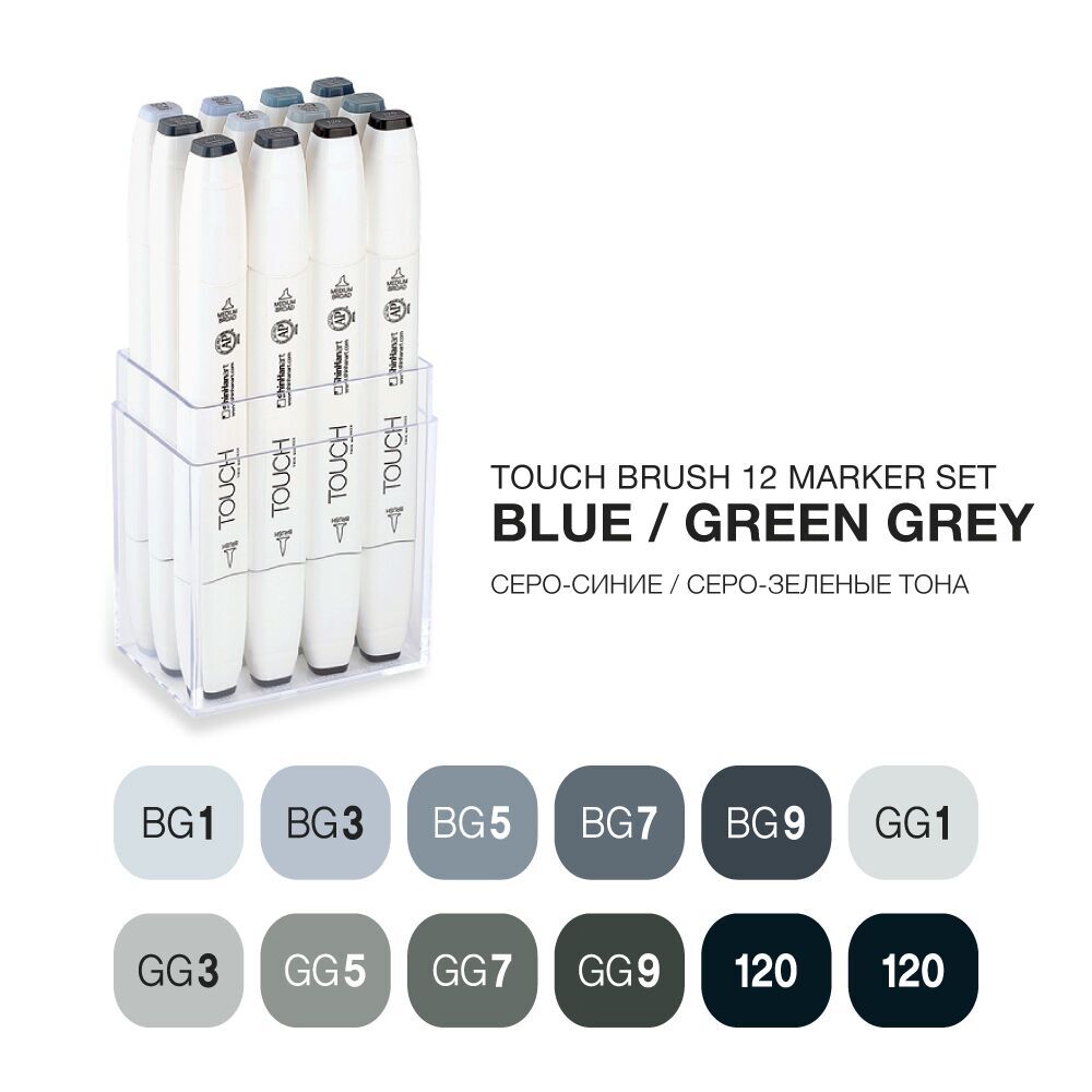 Cпециальная серия «Touch Brush» с пером-кистью, имитирующая настоящую акварельную кисть художника. Палитра спиртовых маркеров «Touch» серии «Brush» идентична «Twin» и насчитывает 204 прозрачных цвета — их можно накладывать друг на друга, смешивать, добиваясь как равномерных заливок, так и новых оттенков и градиентов. Также можно использовать блендер для создания мягких переходов. Маркеры «Touch» подходят для рисования на бумаге, картоне, фотографиях, ксерокопиях, пластике, дереве, ткани, холсте. Больше количество цветов дает возможность собрать палитру маркеров «Touch» для скетчей на различные темы: городские архитектурные зарисовки, ботанический скетч, еда, fashion, автомобильный дизайн, леттеринг, комиксы манга и многое другое. Чернила «Touch» на спиртовой основе — нетоксичны и не портят поверхность бумаги в отличии от маркеров на водной основе. Скетчи маркерами «Touch» быстро высыхают на бумаге и становятся водостойкими, бескислотными. Основные свойства маркеров «Touch Brush»: Широкая цветовая палитра 204 цвета; Маркеры перезаправляемые, сменные перья; Спиртовые чернила, быстросохнущие, нетоксичные, бескислотные; Двусторонний маркер — мягкое перо-кисть и долото; Удобный дизайн, легко контролировать процесс; Гарантия соответствия цвета; Сделаны в Корее. Данный набор содержит цвета: BG1, BG3, BG5, BG7, BG9, GG1, GG3, GG5, GG7, GG9, 120, 120.
