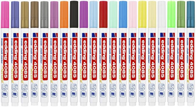 Когда речь заходит о тонком письме или элегантных рисунках мелом, меловой маркер edding 4085, несомненно, является идеальным выбором. Тонкое круглое перо подает сверх плотный жидкий мел, что позволяет надежно писать и делать пометки даже на небольших участках. Он доступен в 20 цветах и предлагает широкий выбор для творчества на гладких поверхностях, таких как доски, зеркала и стекло. Этот edding подходит не только для воплощения творческих идей в домашних условиях, но и является любимым инструментом для бизнеса, в ресторанах, барах или стекольной промышленности. Чернила создают чистые линии на поверхностях, но легко снимаются влажной тканью. Благодаря большому выбору цветов, меловой маркер edding 4085 предлагает такие же универсальные возможности, как и цели, для которых он используется.