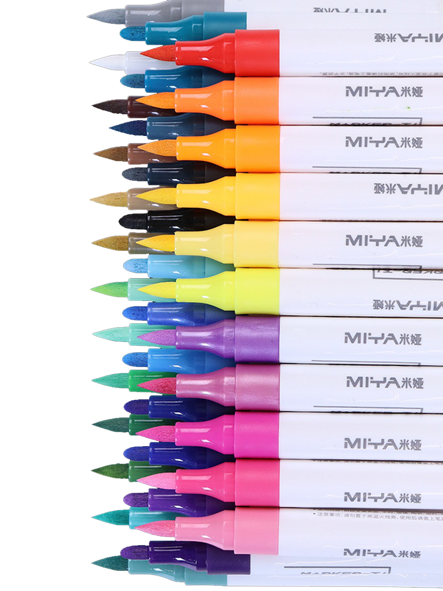 Акриловые маркеры HIMI MIYA с двумя наконечниками представляют собой удобный и универсальный инструмент для художников и дизайнеров. Один наконечник тонкий, предназначен для детальной работы и тонких линий, другой – широкий, подходит для закрашивания больших поверхностей и создания широких мазков. Маркеры обеспечивают яркие и насыщенные цвета благодаря высокому содержанию пигментов. Акриловая краска быстро сохнет, что позволяет избежать размазывания и работать в несколько слоев. Подходят для различных поверхностей, таких как бумага, картон, дерево, ткань, стекло и пластик. Краска устойчива к воздействию света, что обеспечивает долговечность рисунков. Маркеры легко держать в руке, они не требуют дополнительных инструментов для работы, что делает их идеальными для использования в любых условиях.