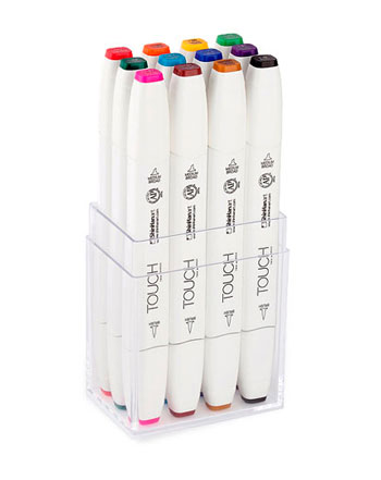Cпециальная серия «Touch Brush» с пером-кистью, имитирующая настоящую акварельную кисть художника. Палитра спиртовых маркеров «Touch» серии «Brush» идентична «Twin» и насчитывает 204 прозрачных цвета — их можно накладывать друг на друга, смешивать, добиваясь как равномерных заливок, так и новых оттенков и градиентов. Также можно использовать блендер для создания мягких переходов. Маркеры «Touch» подходят для рисования на бумаге, картоне, фотографиях, ксерокопиях, пластике, дереве, ткани, холсте. Больше количество цветов дает возможность собрать палитру маркеров «Touch» для скетчей на различные темы: городские архитектурные зарисовки, ботанический скетч, еда, fashion, автомобильный дизайн, леттеринг, комиксы манга и многое другое. Чернила «Touch» на спиртовой основе — нетоксичны и не портят поверхность бумаги в отличии от маркеров на водной основе. Скетчи маркерами «Touch» быстро высыхают на бумаге и становятся водостойкими, бескислотными. Основные свойства маркеров «Touch Brush»: Широкая цветовая палитра 204 цвета; Маркеры перезаправляемые, сменные перья; Спиртовые чернила, быстросохнущие, нетоксичные, бескислотные; Двусторонний маркер — мягкое перо-кисть и долото; Удобный дизайн, легко контролировать процесс; Гарантия соответствия цвета; Сделаны в Корее. Данный набор содержит цвета: R11, YR23, Y35, G46, G54, B63, PB71, P81, RP87, BR91, BR101, 120.