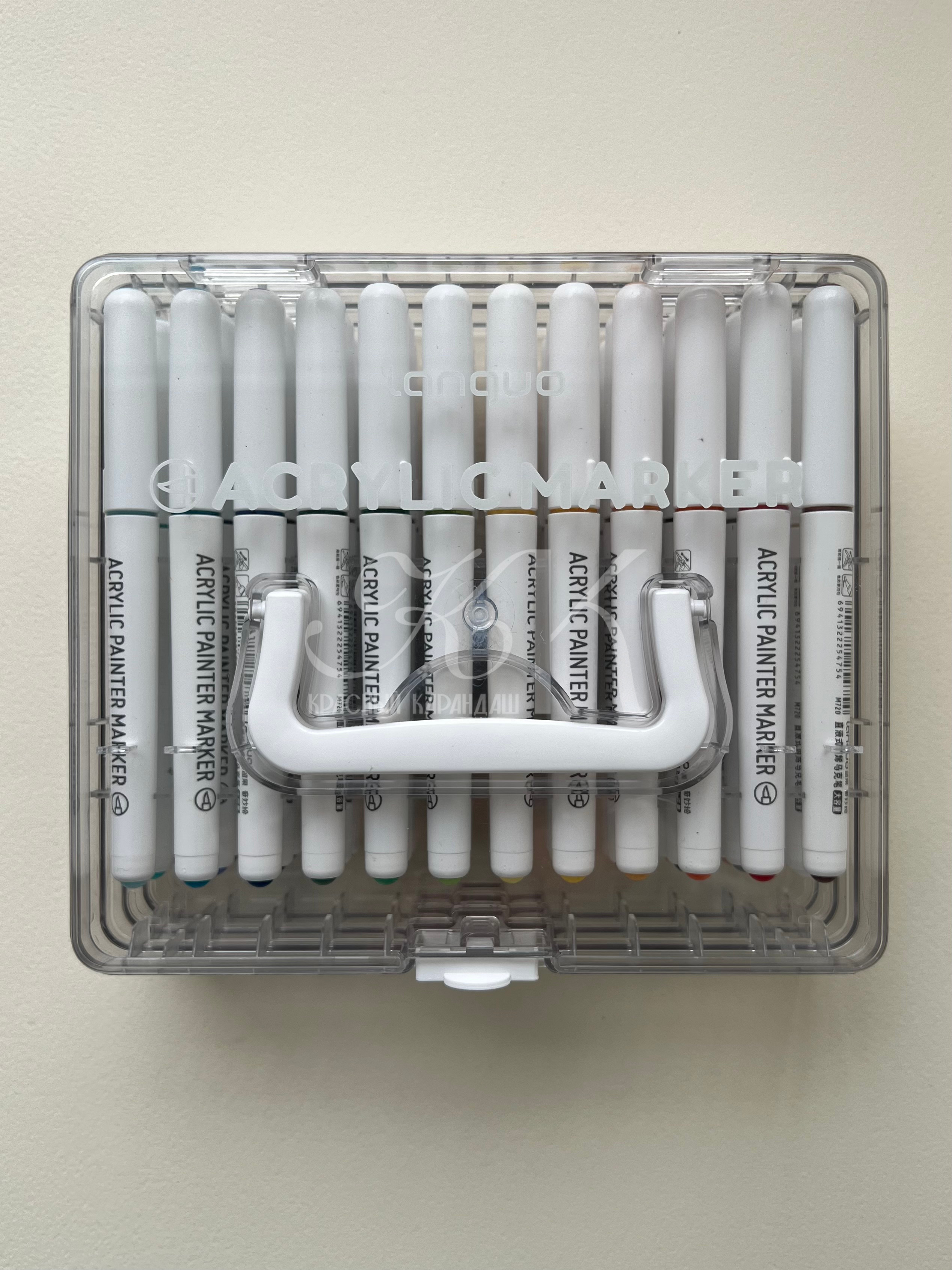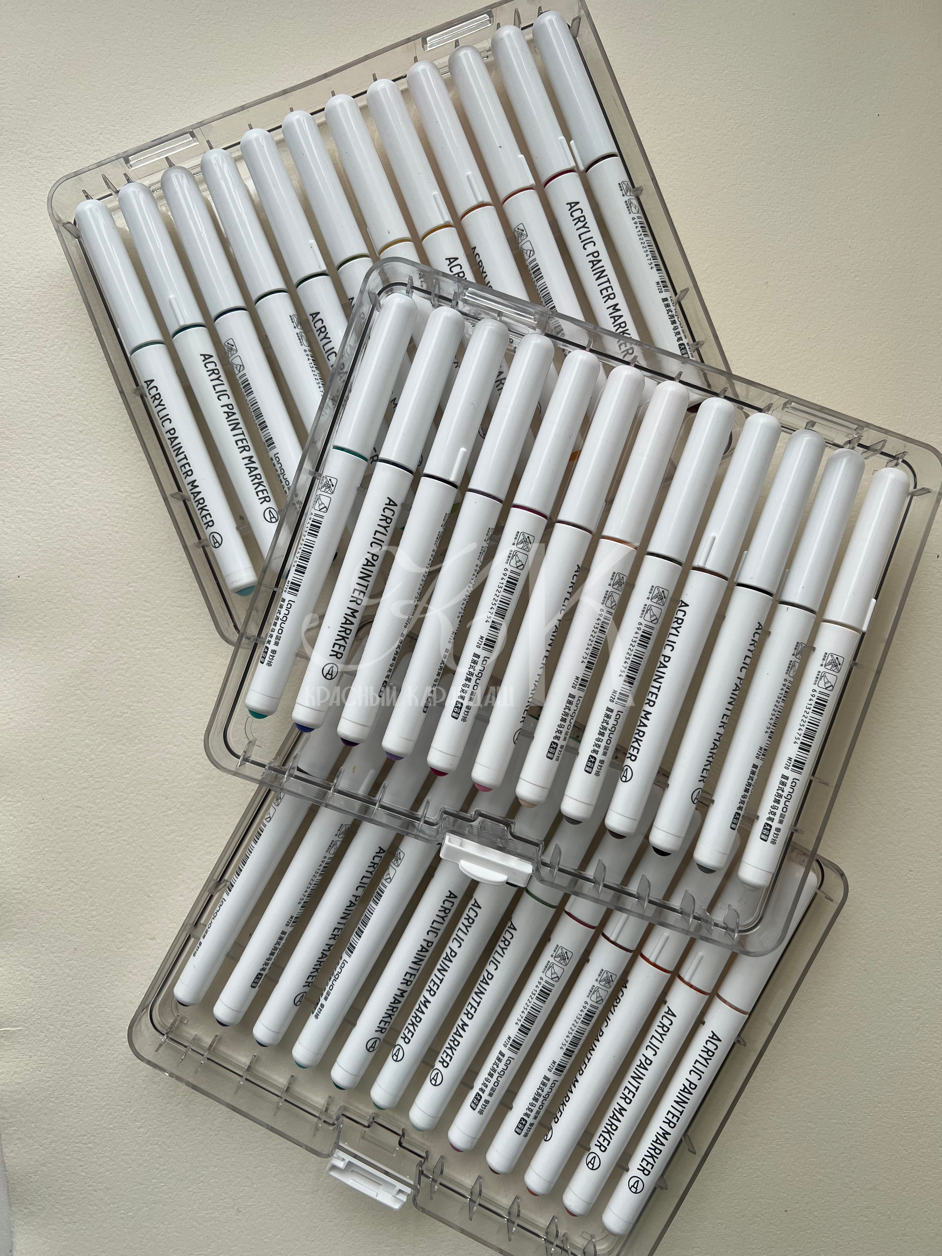 Акриловые маркеры на водной основе. Подходит для письма, рисования, декорирования. Можно использовать на любых поверхностях: холстах, бумаге, дереве, металле, картоне. Маркеры имеют высокую укрывистость с равномерным красочным слоем. После высыхания образуют плотную несмываемую плёнку. Наконечник-кисть обеспечивает линию шириной 1-3 мм.