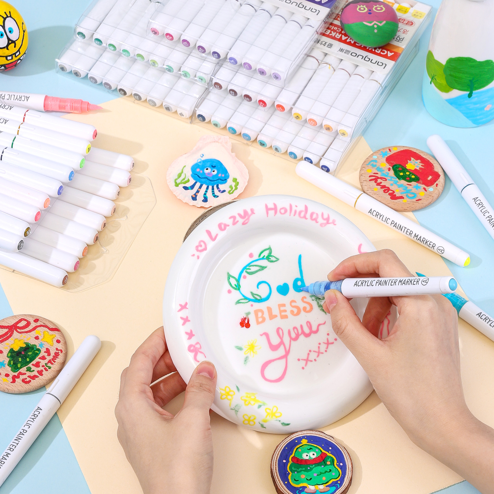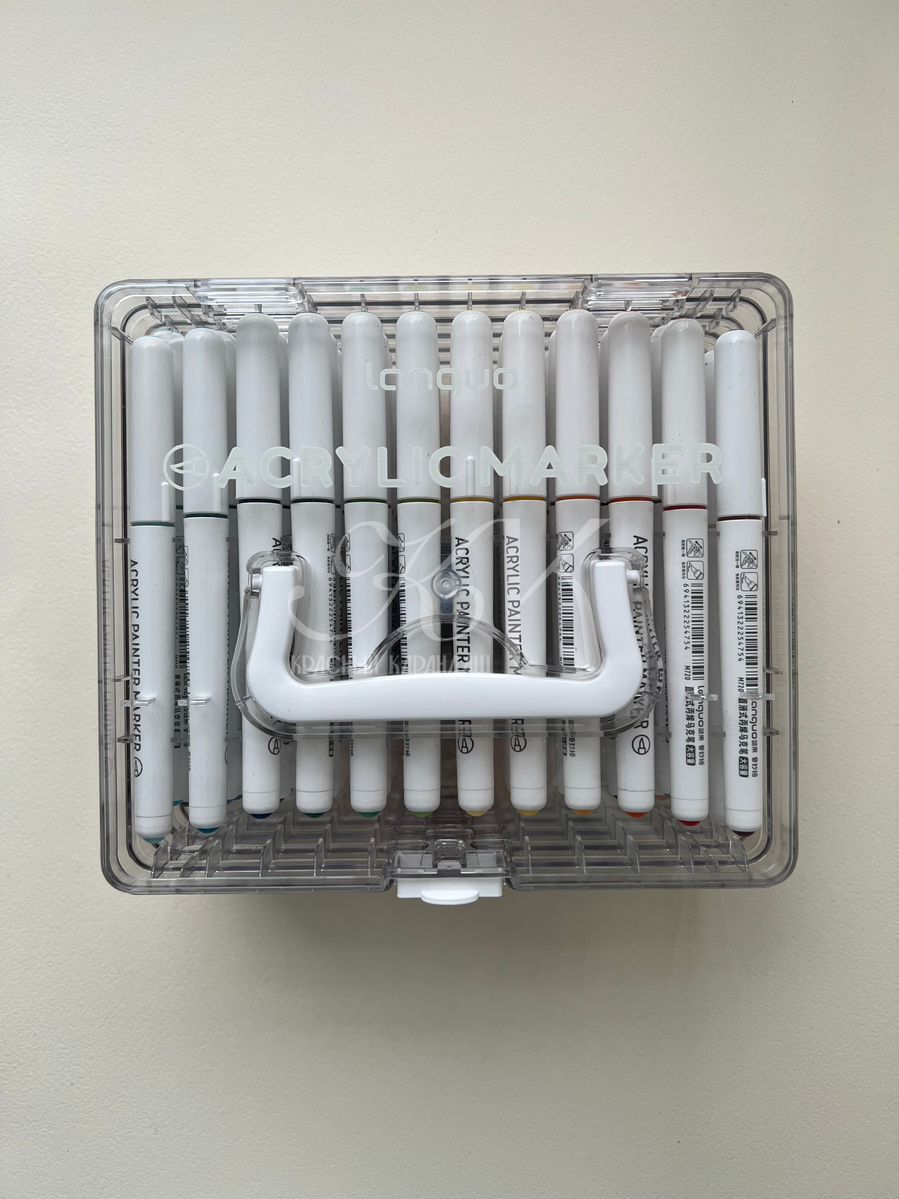 Акриловые маркеры на водной основе. Подходит для письма, рисования, декорирования. Можно использовать на любых поверхностях: холстах, бумаге, дереве, металле, картоне. Маркеры имеют высокую укрывистость с равномерным красочным слоем. После высыхания образуют плотную несмываемую плёнку. Наконечник-кисть обеспечивает линию шириной 1-3 мм.
