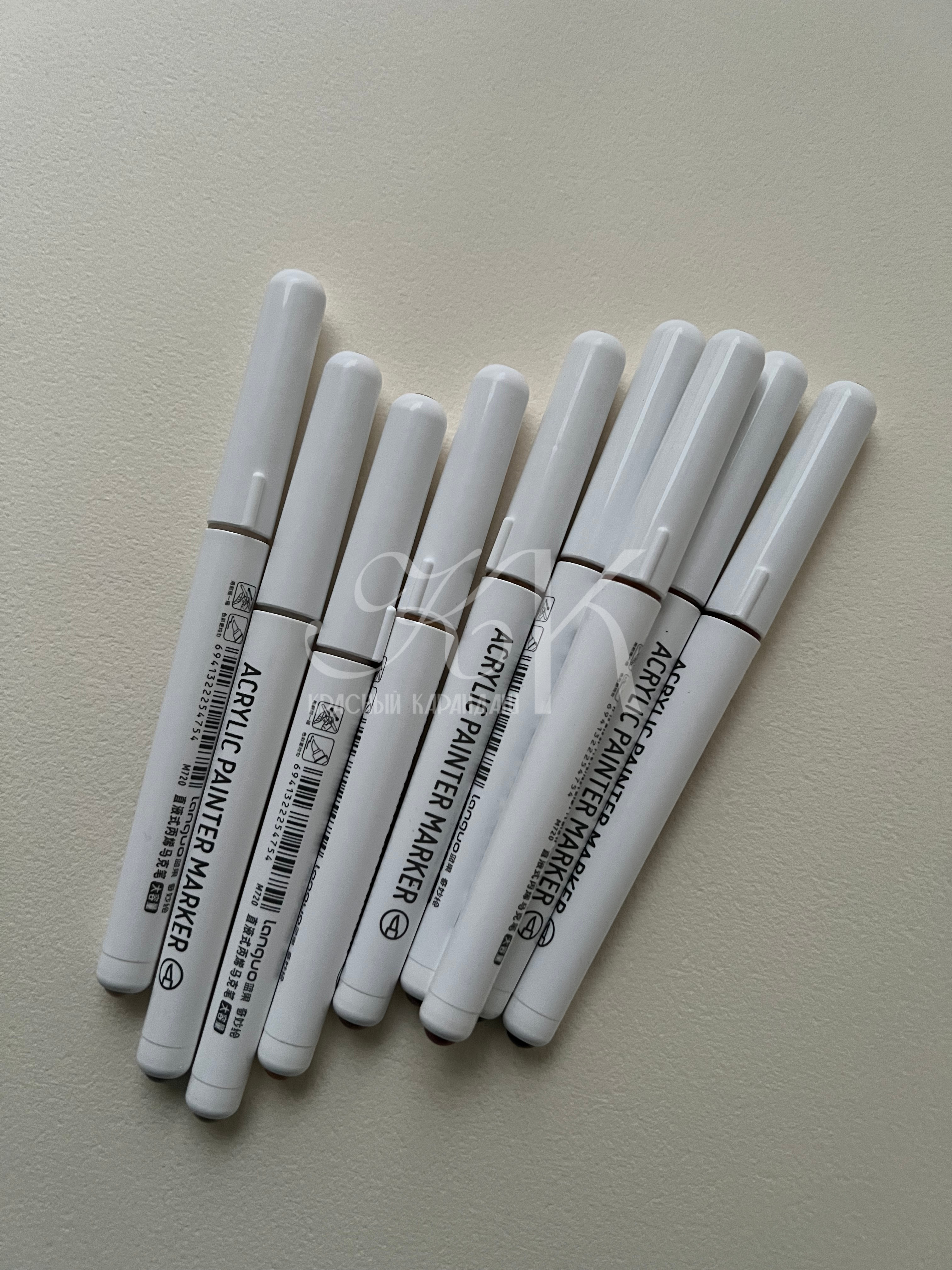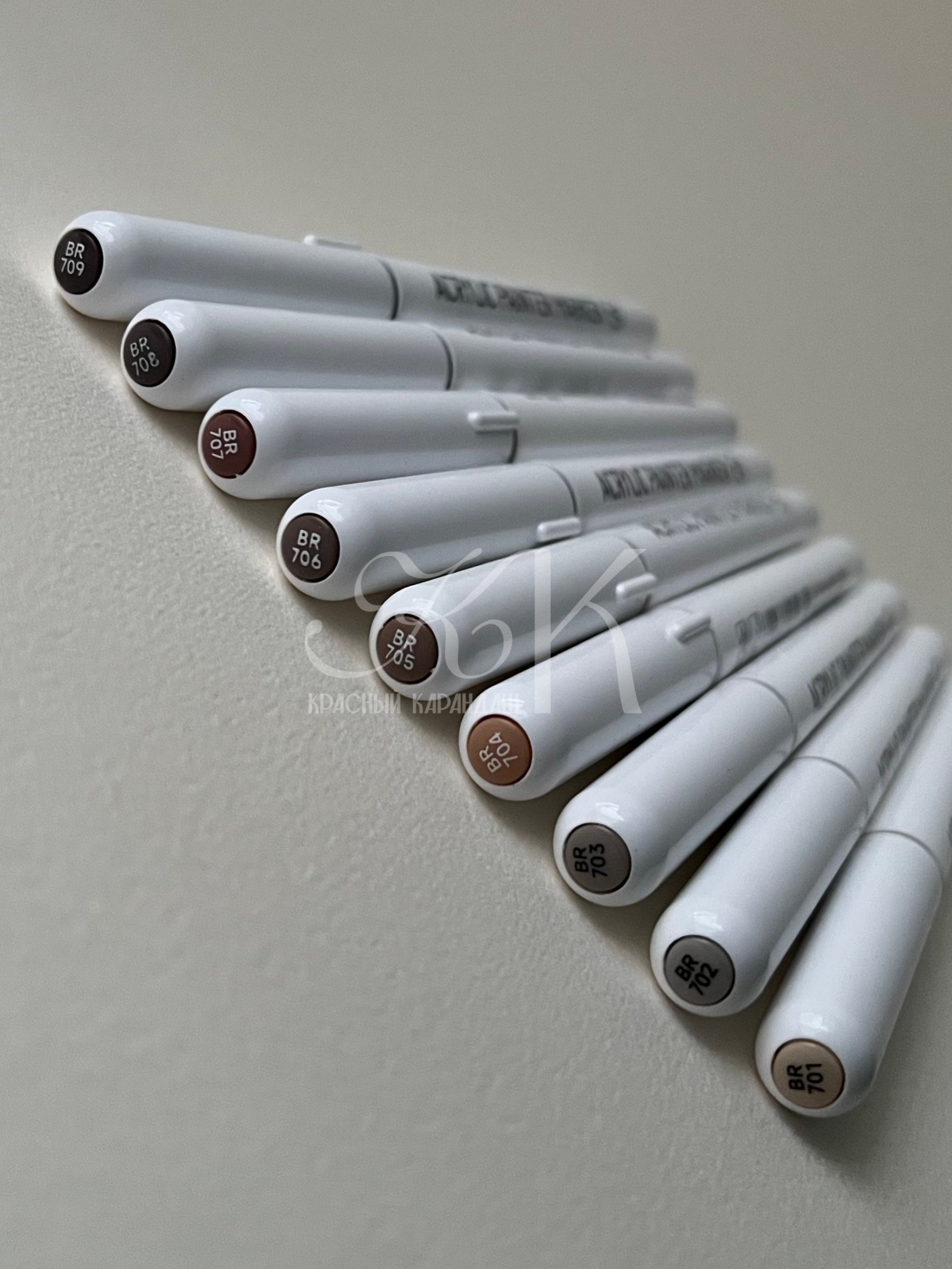 Акриловые маркеры на водной основе. Подходит для письма, рисования, декорирования. Можно использовать на любых поверхностях: холстах, бумаге, дереве, металле, картоне. Маркеры имеют высокую укрывистость с равномерным красочным слоем. После высыхания образуют плотную несмываемую плёнку. Наконечник-кисть обеспечивает линию шириной 1-3 мм.