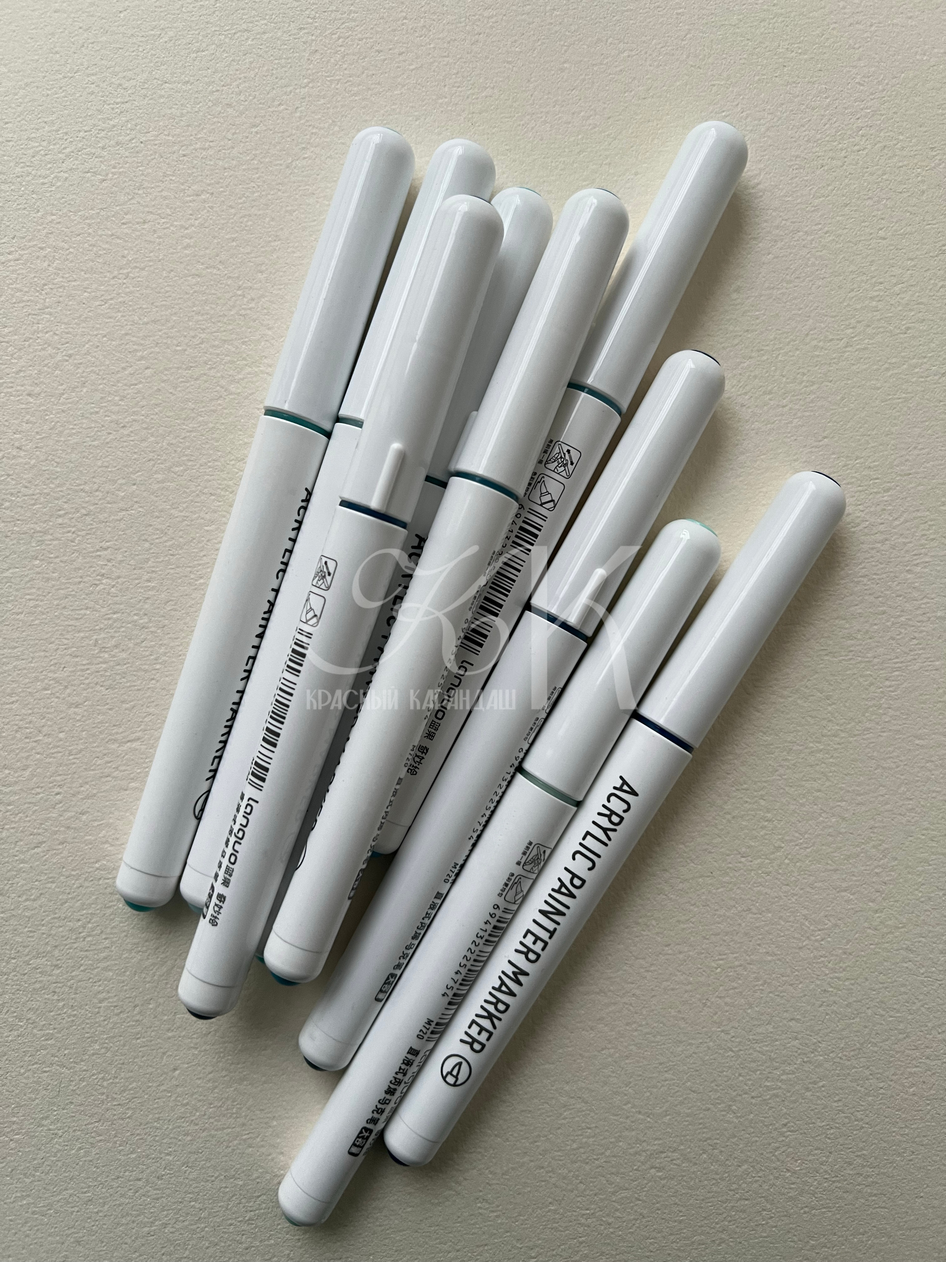 Акриловые маркеры на водной основе. Подходит для письма, рисования, декорирования. Можно использовать на любых поверхностях: холстах, бумаге, дереве, металле, картоне. Маркеры имеют высокую укрывистость с равномерным красочным слоем. После высыхания образуют плотную несмываемую плёнку. Наконечник-кисть обеспечивает линию шириной 1-3 мм.