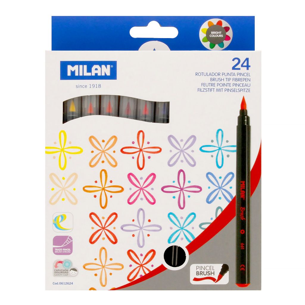 Цветные фломастеры-кисти, для рисования на бумаге. Яркие и насыщенные цвета. Идеально подходят как детям так и взрослым, для леттеринга и скрапбукинга. Благодаря тому, что фломастеры на водной основе, они легко отстирываются с большинства видов ткани. Вентилируемый колпачок обеспечивает безопасность при использовании фломастеров ребенком (не перекрывает доступ кислорода в случае попадания колпачка в дыхательные пути). Фиксированный пишущий узел не даст стержню провалиться даже при сильном нажатии. Пишущий узел диаметром 0.5-4 мм позволяет рисовать так тонкой линией так и более толстой для быстрого зарисовывания или разукрашивания рисунков. Также, наконечник-кисть позволяет проводить единую линию одинаковой толщины и интенсивности или менять толщину линии, как при рисовании кистью.